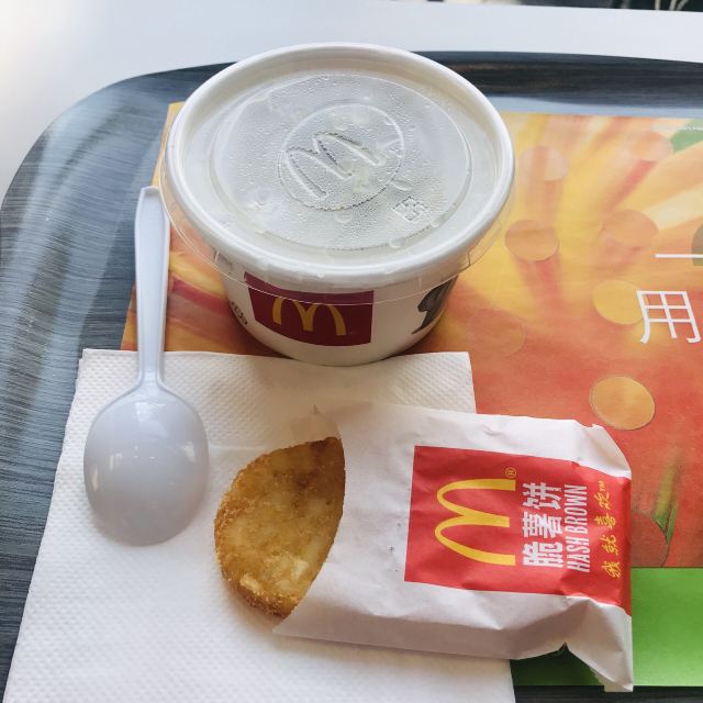 从隆昌路地铁站出来,迎面正看到“麦当劳”,有点热,正好去买一个冰激凌蛋筒,降温又补充能量。 “麦当劳”隆昌路华联超市店,外观建筑漂亮,店堂比较大,层高也高,环境舒适,店内装修比较有现代感,符合赶地铁的上班族用餐的快餐店的定位。吃完了才想起来这冰激凌🍦没有拍照,抱歉了!