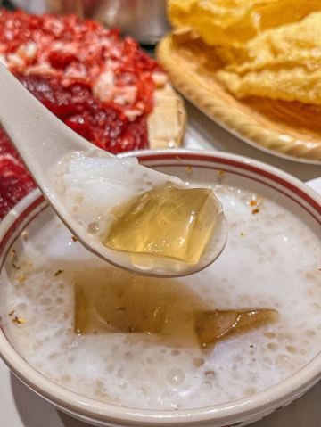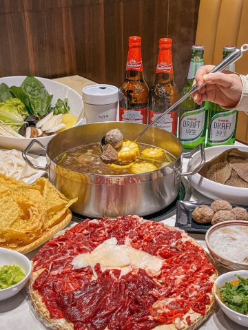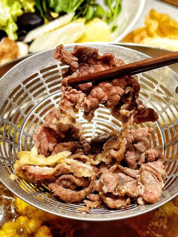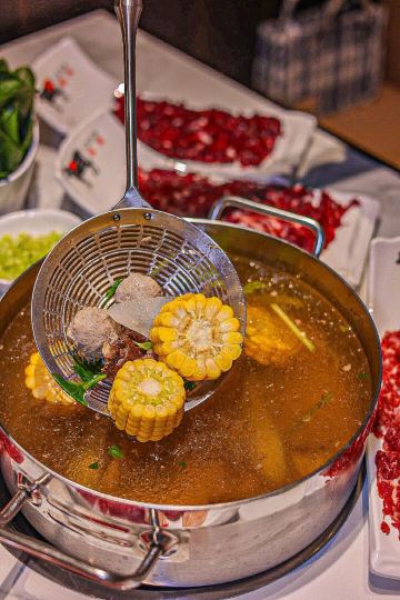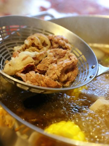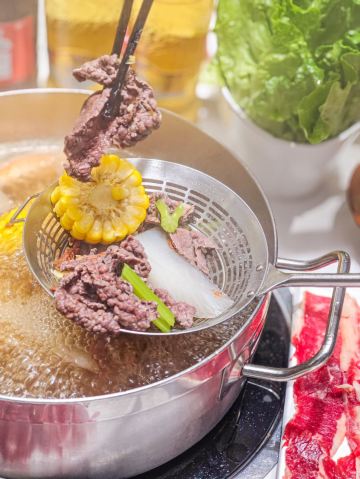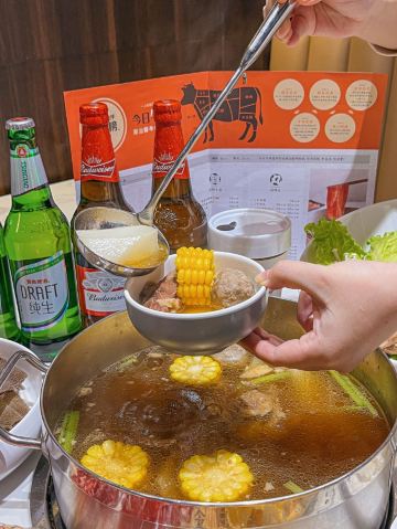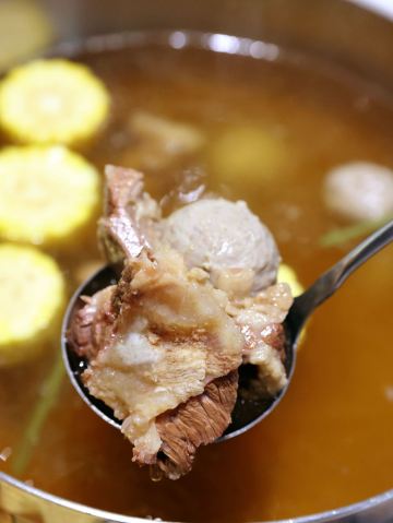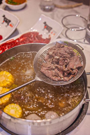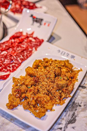 堪称潮汕牛肉火锅的力作,据说一头牛从牧场到上桌不超过16个小时,新鲜的食材自然保证了绝妙的口感,不需要精心调配蘸料,在牛事招牌锅中涮一涮就美味无比,牛肉丸更是弹脆可口,让人不禁联想起了《食神》里的画面。