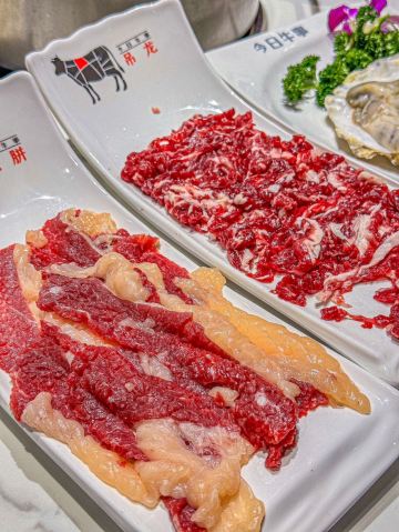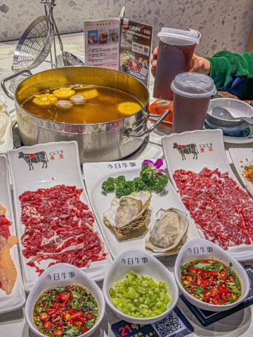 🔮精灵(急事弹我语音)在魔都吃的超正宗潮汕牛肉火锅,你心动💗嘛? 解迷了,这家超高性价比的潮汕牛肉火锅味道超赞👍🏻了,店里亮堂无比,拉上朋友来贴膘再合适不过了。 🌷牛事招牌锅 这个锅🍲是必点的,里面的料也是足足的,我超喜欢喝上一碗汤,超级暖胃,原汁原味的鲜。 🌷生蚝 选用的生蚝超新鲜,🐚鲜嫩可口又Q弹,入口鲜甜无比。 🌷吊龙 这部分的牛肉也是不错,吃起来劲道十足,真的是牛肉🥩控们的福音啊。 🌷牛肉丸 我超喜欢的潮汕牛肉丸,🍢一口下去比较筋道,还会爆汁,果然还得是新鲜手打的品质才高。 🌷潮汕炸腐皮 蓬松酥脆的炸腐皮直接放在锅里,🥢涮个两下就能吃了,是那种劲劲香香软软的感觉。 🌷凉茶 各种菜品也是超有潮汕味道的,🍵吃完记得来一杯凉茶,不会上火🔥的。 火锅真的是聚会首选,🌈边吃地道的潮汕牛肉火锅边欢声笑语,超惬意难忘呢。