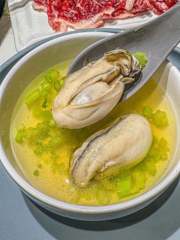 YoYo_6U1O8N2G潮汕朋友都直夸正宗的鲜牛肉火锅🐛 上海这家地道的潮汕牛肉火锅就连潮汕朋友都直夸正宗,人气没话说,晚上17.00就排队了 明档鲜切牛肉看得清清楚楚,冬日里晚餐最正确的打开方式就是来上一顿热气腾腾的鲜牛肉火锅,这到底有多幸福谁吃了就知道,哈哈哈 •生蚝 生蚝跟手掌一样大,每只都很肥美、新鲜 在原汤锅里煮上30秒刚刚好,原汁原味吸溜一下吃嘴里敲满足!!!或者蘸酱汁又是另一种风味 •鲜切牛肉 我们一口气点了吊龙,肥胼,嫩肉…在锅里稍微涮一下即可食用,入口鲜嫩,满嘴肉香!个人更喜欢肥胼这种连筋带点肥的肉肉,和小伙伴们连炫了N盘 •潮汕凉茶 潮汕特色的凉茶必点哈,清热降火和涮火锅简直就是完美cp,大家都试试吧 🌈今日牛事潮汕鲜牛肉火锅(徐汇总店) 📍柳州路427号 🚇地铁12号线桂林公园站