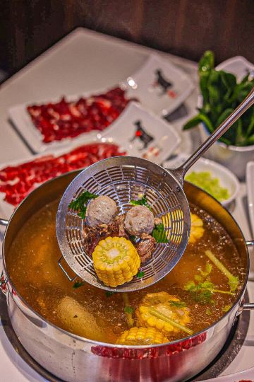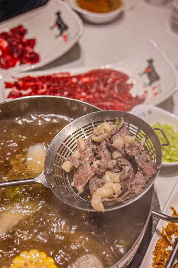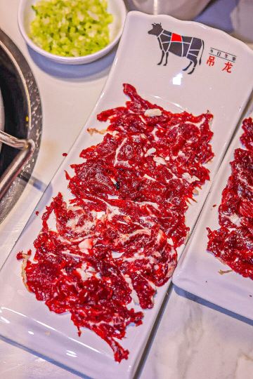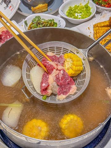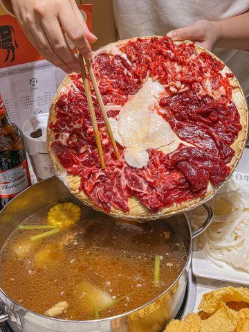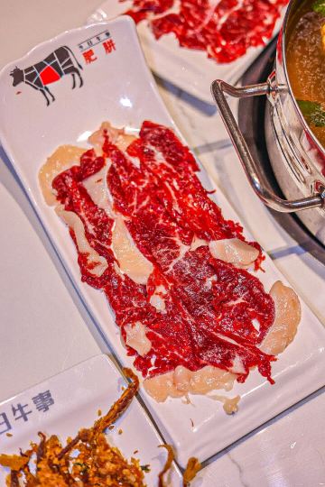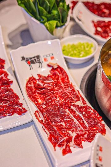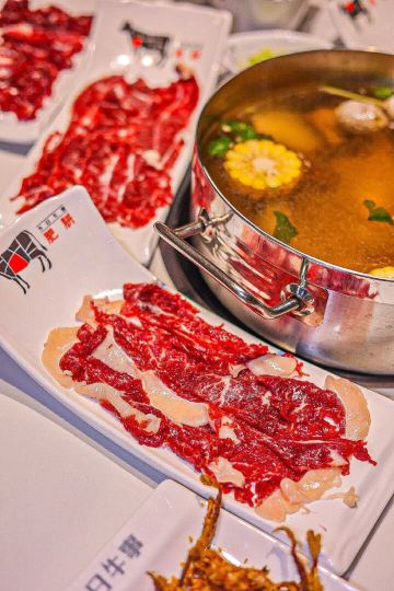 YoYo_4G7I8L1B热气腾腾的人间,品味潮汕火锅的魅力 火锅的快乐,潮汕🐮肉会告诉你。 天气转凉,带娃家附近吃个清淡鲜美的潮汕牛肉火锅。 临街的店铺,超宽敞的环境,时尚简洁的装修风,舒适的沙发座位,门庭若市。 这家是🐮🥩火锅的天花板,性价比很高,吸引了众多食客们前来打卡。 牛事招牌锅 清澈的汤底,🐮腩+牛肉丸+白萝卜+🌽的简单食材,健康养生,原汁原味的地道和香醇。 牛肉拼盘 🐮各个部位的🥩整齐地摆放在盘子里,红艳艳的超有食欲。 -吊龙 肥瘦均匀,脂肪呈条状分部,🥩质丰满湿润,肉味最浓,鲜美可口有嚼劲。口感分明,滋味鲜甘持久。 -匙柄 是🐮🥩中最好的部位之一。脂肪含量少,切面呈树叶状,纹理清晰,瘦瘦的肉肉,被长而细的白筋串起。🐮腥味淡,口味鲜甜,嚼劲适中,口感甜嫩无渣。 牛肉丸 细嫩弹滑,紧实香醇,一口咬下去汁水就像烟花一样在嘴巴里绽放,不愧是舌尖上的美味。