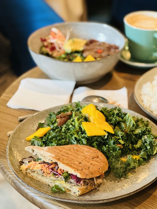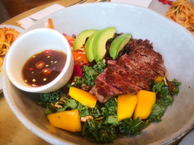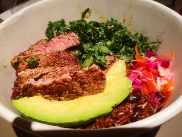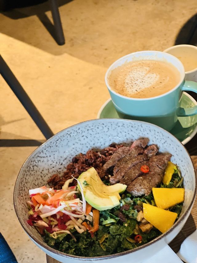 wagas的午饭,以前嫌它贵,性价比不高,现在让你吃不到[笑哭] 居家办公一个多月了,日子过的浑浑噩噩,看看照片,才想起来以前工作日的午餐还是蛮好的; 牛肉能量碗,粗粮饭、泡菜、牛油果和7分熟牛肉,一碗下去非常满足,晚饭都可以省略了,食材都很新鲜,牛肉煎也蛮嫩的; 饭后再来一杯咖啡,这样的日子,希望能够快点恢复啊!