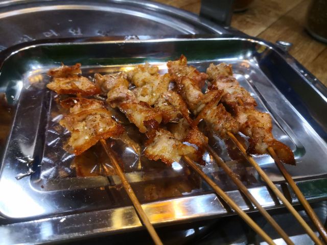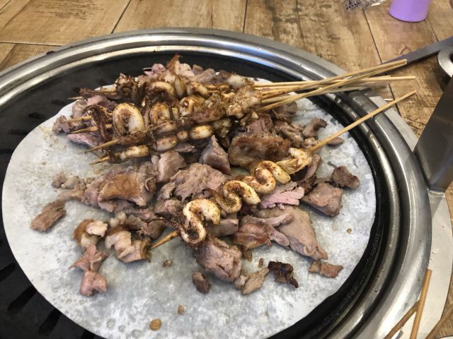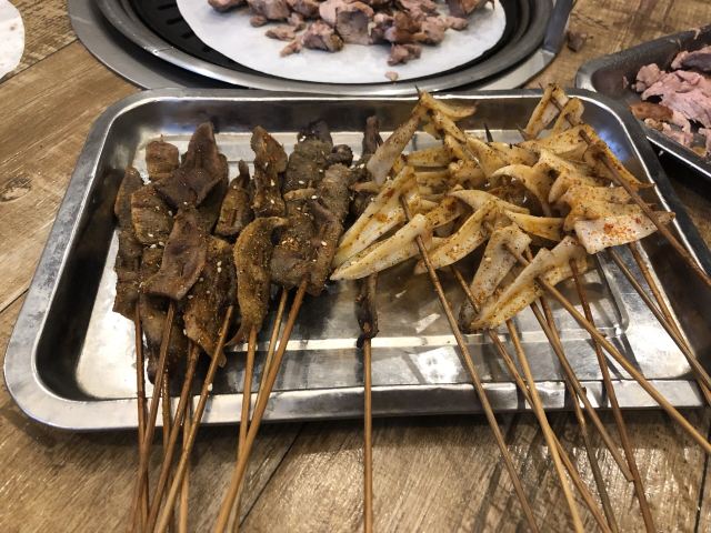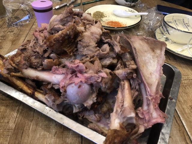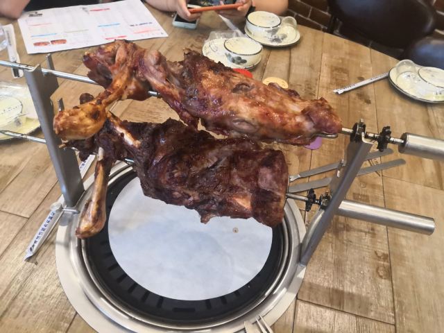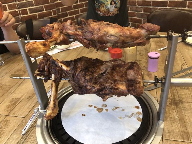 宋记名羊天下碳烤羊腿,这里也算得上是老店了,开了起码5年以上了,这家的羊腿是最大特色,因为现烤现卖的,而且烤制比较长,所以要提前下定,牛舌还行,正好有小伙伴自带了刀切馒头,所以也烤了烤,味道还真不错,有包厢,12人妥妥的