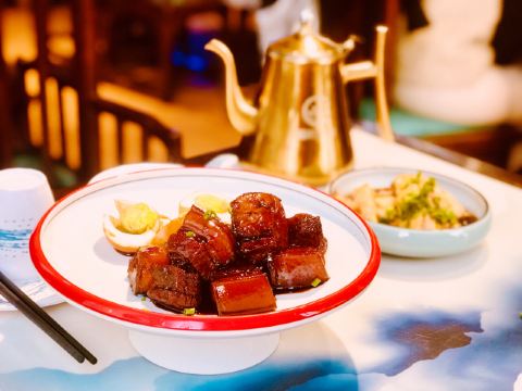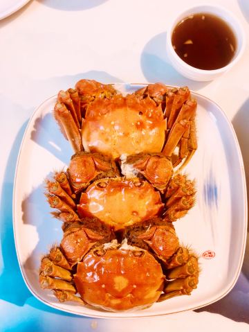 宜山路蒲汇塘路上的留柱小馆,以农家菜为特色,前段时间趁网上搞活动,买了他家优惠价99元的2-3人大闸蟹套餐,去尝个鲜。 服务员主动招呼,安排落座,立马上茶。得知下午还要上班,上菜也很快。 套餐包括:冷菜老上海葱油鸡、糖醋茼蒿菜,热菜皖南黑毛猪红烧肉、苏北土鸡蛋炒虾仁、清蒸大闸蟹三个,另有瑶柱白玉芙蓉羹、蜜瓜果盘一碟、米饭三碗。 其中皖南黑毛猪红烧肉几乎每桌必点,肥瘦相间,有土猪肉的香味,嚼起来扎实又不老,上盘后加了两个对开的白煮鸡蛋作点缀,蛮有农家乐趣。另外三个清蒸大闸蟹都是四两以上的公蟹,蟹膏饱满,白白厚厚,质量超出预期,光这三个蟹也值99元的套餐价了,何况还有其他菜呢! 总体说来,这是家性价比很高的餐馆,即使不买优惠套餐,原价的饭菜也是美味又实惠的!
