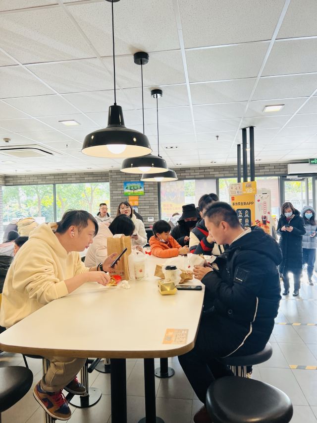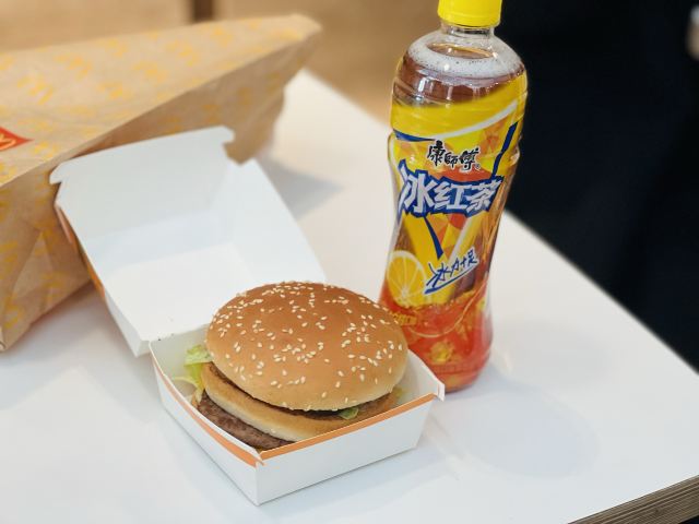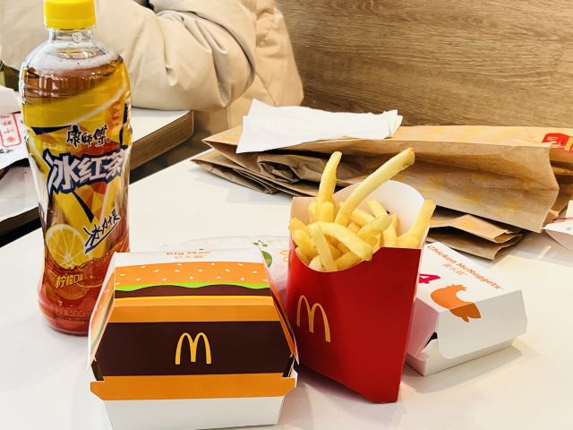 瞧意思麦当劳的口味都一样,标准化产品了,地铁上来很方便,里面空间也够大,上下两层,现在点餐也很方便,APP手机上可以操作,现场机器也可以。