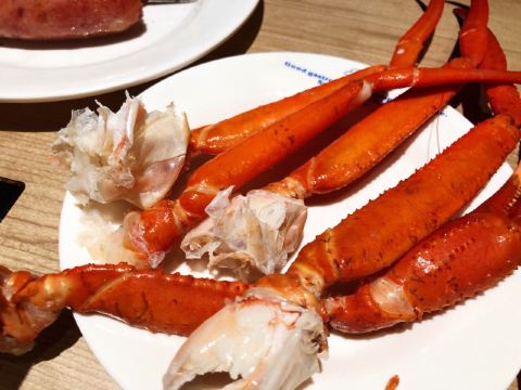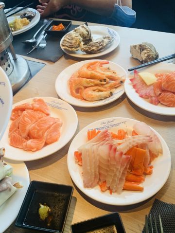 多伦多海鲜自助,平民价格吃到好多新鲜的海鲜,蟹脚、虾等个头大,肉质新鲜有弹性,小火锅里刷一下再吃,甜甜的。还有生蚝扇贝,比较小,口感没有虾等好,各种生鱼片都是现切现取的,蘸点芥末味道很不错。