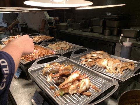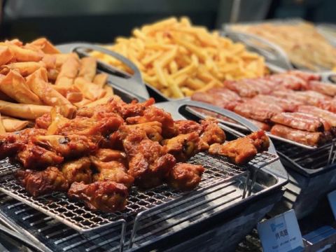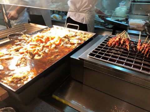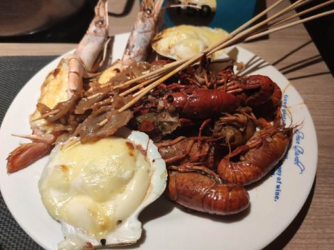 烤生蚝,大虾,香煎龙利鱼,扒牛排,火锅,多伦多海鲜,醉蟹脚,凤梨,烧烤,现榨果汁,羊肉串,片皮烤鸭,哈根达斯冰激凌,包片皮鸭,碳烤生蚝,生鱼片,三文鱼刺身,蛋挞,阿根廷大虾,烤鸭卷,小龙虾,小梭子蟹