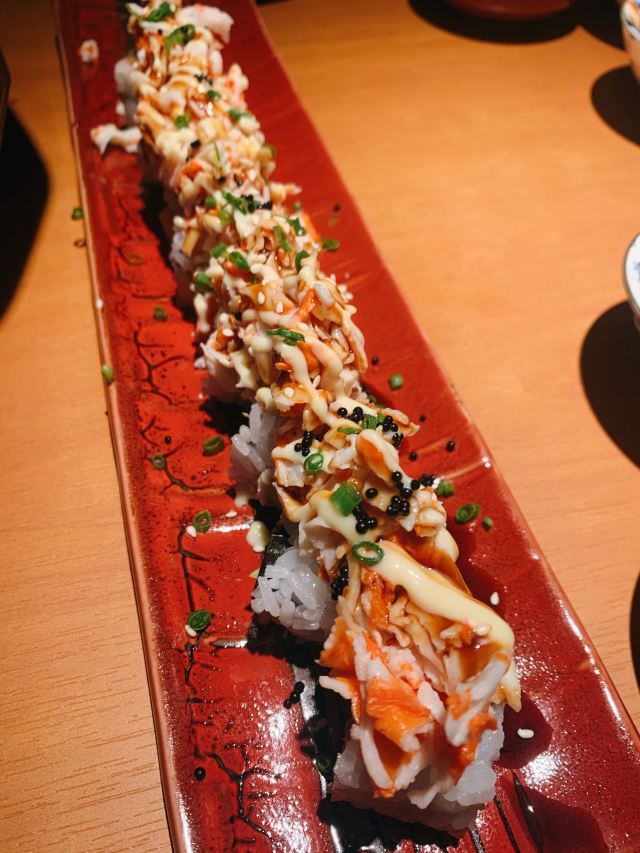 五一期间和朋友聚餐,选了这家商场错开人流高峰,但好多餐厅也已经预约满了,这家也是朋友提早到找等位的,还有几个卡座私密性还不错;服务员也挺热情,过段时间就过来倒水换盘子。他们家的菜品还是比较全的,pad上点菜有图片样式还是挺方便的。第一次来还是点了比较常规的菜品,寿喜锅,肥牛还不少的,只是感觉肥肉多了点,个人喜好吧,蔬菜也挺新鲜,要烧一段时间会更入味,三文鱼肚腩和甜虾,都是很新鲜的,肉质挺肥美,入口也绵密;鳕鱼烤得刚刚好,肉质比较厚实,蘸着色拉酱还不错,寿司,点了两份,味道都还不错,但是握得有点松,一拿就容易碎;他们家总体味道还不错,性价比还行,推荐!