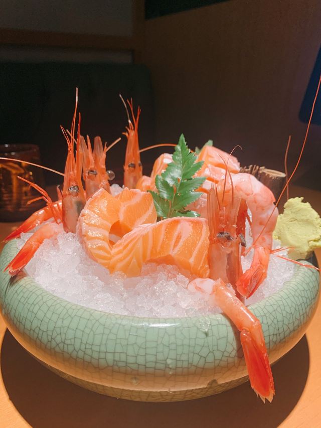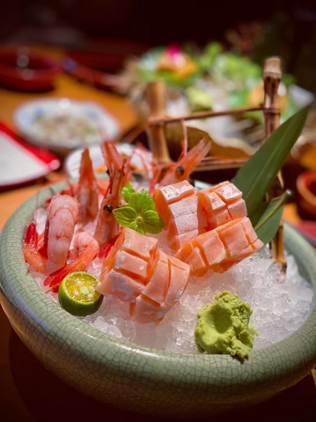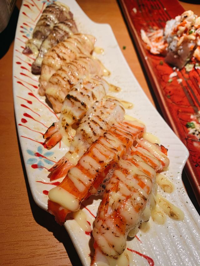 痴痴的饿货五一期间和朋友聚餐,选了这家商场错开人流高峰,但好多餐厅也已经预约满了,这家也是朋友提早到找等位的,还有几个卡座私密性还不错;服务员也挺热情,过段时间就过来倒水换盘子。他们家的菜品还是比较全的,pad上点菜有图片样式还是挺方便的。第一次来还是点了比较常规的菜品,寿喜锅,肥牛还不少的,只是感觉肥肉多了点,个人喜好吧,蔬菜也挺新鲜,要烧一段时间会更入味,三文鱼肚腩和甜虾,都是很新鲜的,肉质挺肥美,入口也绵密;鳕鱼烤得刚刚好,肉质比较厚实,蘸着色拉酱还不错,寿司,点了两份,味道都还不错,但是握得有点松,一拿就容易碎;他们家总体味道还不错,性价比还行,推荐!