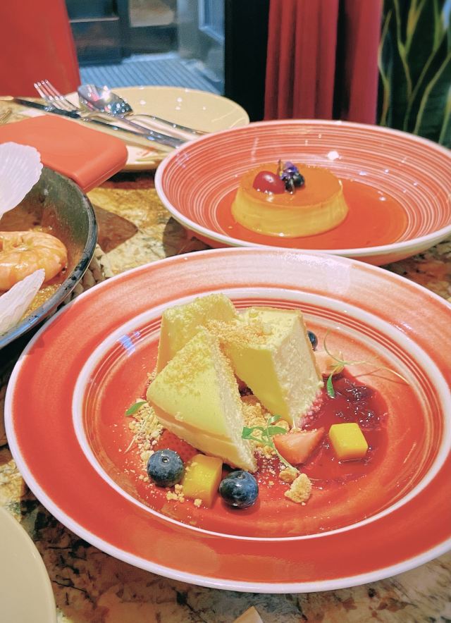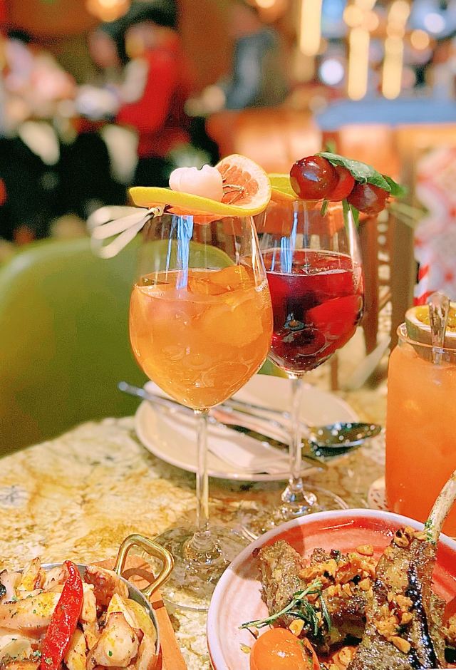 蛋花食游记这抹西班牙红适合圣诞来打卡 上海最近的商场是一家接一家的开,这次来了这家新开的BROWNSTONE,真是里里外外火出新高度,开业的时候还抽奖iphone13pro max,现场看了个路人抽中简直羡慕死了。 作为西餐的狂热爱好者,西班牙菜鲜美又奔放,海鲜配上葡萄酒让人像度假一样放松,这道传统西班牙海鲜铁盘饭我们几个小姐妹分的干干净净,米饭Q弹入味,三文鱼和虾拌在一起口感超丰富~ 作为主菜,我们一人来了一块烤羊架,羊的风味主要来自脂肪,店里做的没有腥味,一块下去满足感不言而喻,秋冬来一份羊肉滋补还很有情调。 小菜推荐香煎小蘑菇和火焰橄榄油爆虾,如果是情侣约会,油爆虾点火很有仪式感,旁边桌女孩子都忍不住过来拍照,很有面子。 店里还有一个特色是西班牙果酒叫Sangria,水果在酒里浸泡的时间足够长,和葡萄酒的香味融为一体,新鲜葡萄红酒渍过的梨混搭出的风味简直一绝,朋友不能喝酒的话可以点无酒精的调制饮料,能喝酒的朋友千万别错过,必点。 店里已经放上了圣诞树,圣诞过来约会绝对物超所值。