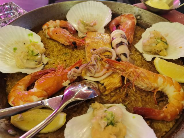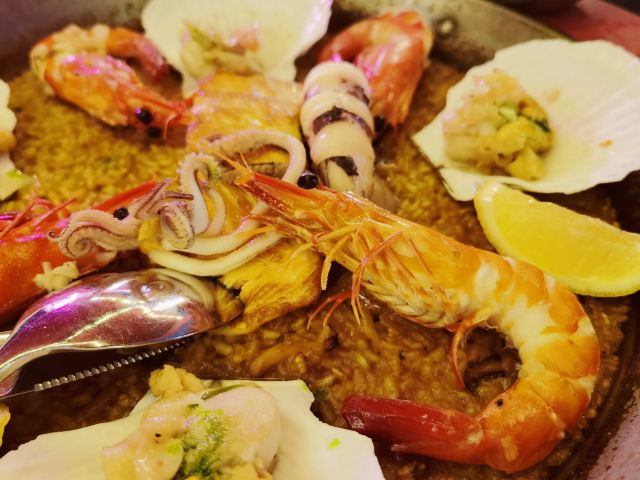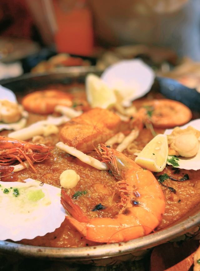 加油干饭呀新开业的大宁久光,无疑是魔都圣诞节的重磅献礼🎅商场里里外外都将节日气氛拉满,B2层的门面担当Brownstone,打造出最暖心的圣诞小角落🎄 开业就送📱13 Pro Max的西班牙餐厅🇪🇸全网夸👏 11.27~12.16期间写评价还能抽取限量超级盲盒,真的壕气值MAX🔝 🔥火焰橄榄油爆虾🦐现场点火将仪式感拉满📈去壳大虾浸润在丰富蒜油中🧄无蒜不欢的小伙伴立马忍不住伸爪了🍴 🥘传统西班牙海鲜铁盘饭🥘超级硬核‼️精选个大肥美的扇贝和大虾,表面还有一整块香煎三文鱼神助攻🍣一场海鲜选美大赛拉开序幕,把手机喂饱了,眼睛看饿了👀 慢火烹制的米饭粒粒分明,软硬适宜仿佛会爆海水,推荐与表面的蛋黄酱搅拌均匀,从而口感升华层次丰富,我敢打赌,吃过一次就会被深度圈粉🙆🏻♀️ 🍷Sangria果酒🍷一秒唤醒西班牙的独家记忆,将新鲜水果封印在红酒里,香甜顺滑却又热情奔放,简直一口魂穿西班牙🇪🇸