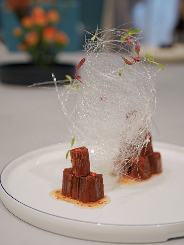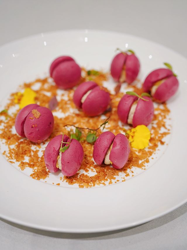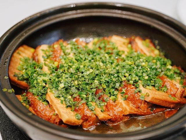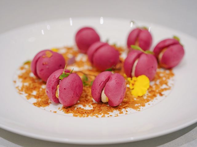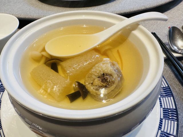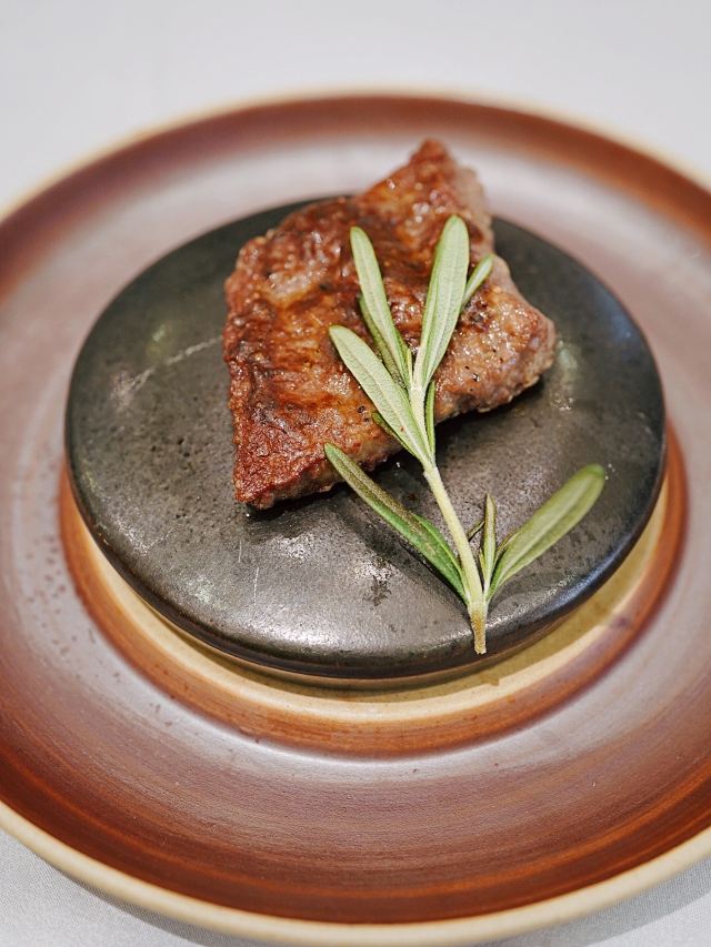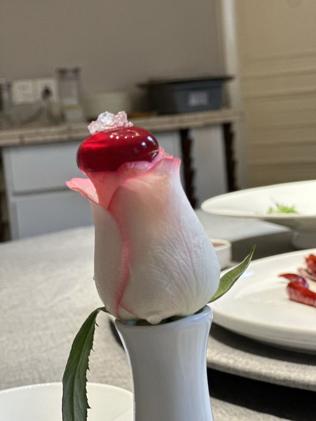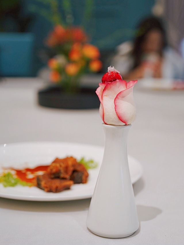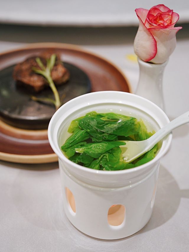 加油干饭呀洋房里的宝藏江浙菜,虹御轩怀着一颗艺术心做美食,每一道都像是在变魔术,不仅味蕾被瞬间征服,身心也迎来巨大满足。 樱桃鹅肝已经out了,💞马卡龙鹅肝💞横空出世,鹅肝也能吃出满满少女心,惊艳程度已经不能用入口即化来形容! 💫拉丝糖藕💫摆盘精致,选用7孔的藕相当软糯,拉丝缠绕在舌尖就像一帘幽梦令人动容。 🦀️秋菊熟醉蟹🦀️秋风起蟹脚痒,丰腴蟹黄呼之欲出,浓郁酒香令人上头,饱满蟹肉直呼过瘾~ 🍄羊肚菌蜜豆🍄和🥓香酥黑叉烧🥓,别看其貌不扬,绝对是餐桌上的黑马,品质赛高口味服众。 🍲川贝老鸭汤🍲炖了8小时的汤,把所有精华都融汇其中,入口有种胶质感,轻抿一口还有点糊嘴呢~ 吃过虹御轩的🥘至尊鱼头佛跳墙🥘,许爷的花胶鱼头都不‼️香‼️了‼️一定要带上汤汁一起食用,千岛湖鱼头搭配海参鲍鱼花胶贝柱,味形超丰富,辣得有层次,吃过鱼头但没吃过这么绝的‼️ 🥩火山石香草牛排🥩 一整块牛排在火山石上躺平,从切开的那一刻就开始biu汁水💦每一寸牛肉都鲜嫩指数爆表,让你吃完一口就会迫不及待下一口。 🌹美点双辉🌹 玫瑰花上那一颗晶莹剔透的露珠,就像吸收日月之精华的晨露,沁人心脾口吐芬芳~