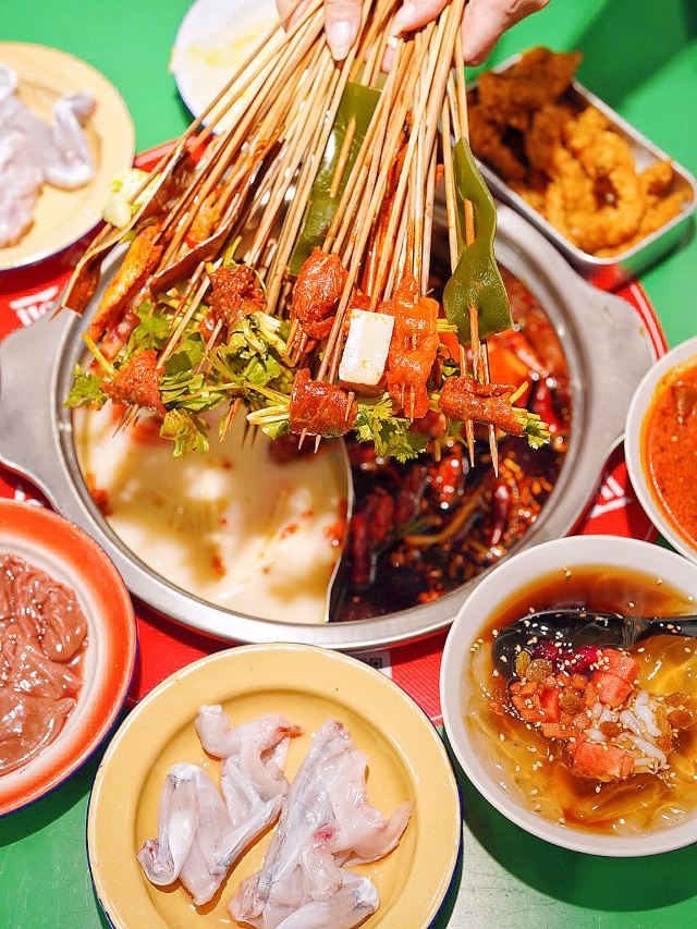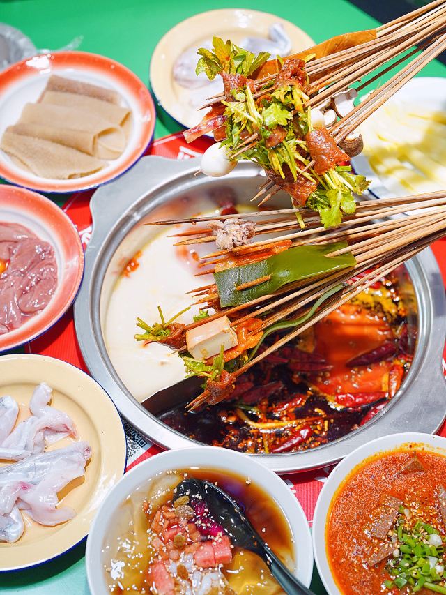 吃饭就别叫我了“好看的皮囊在夜店,有趣的灵魂在公司” 作为网红撸串圣地,淑芬串串从来都是聚光灯下最靓的一姐💃港风装修➕怀旧重庆元素,分分钟带你穿越到“重庆森林”做主角✈️ 地地道道的山城配方,全都藏在淑芬的串串里🌶️专门坐飞机来的招牌红汤锅,辣而不燥、油而不腻,深吸一口就把我送到了雾都 不同口味掌中宝,一样来一把,🈶️藤椒、麻辣、蒜香、孜然、泡椒、藤椒,强势刷新你的味蕾认知🔛一口一串嘎嘣儿脆,不蘸油碟都十分入味~ 荤素搭配的串串在牛油锅里泡温泉♨️辣椒的辣➕牛油的香,双重洗礼锦上添花,先辣后香进而转麻,浅吃一口就麻到你心巴❣️ 无毛肚不火锅,淑芬家的毛肚地位,就如同《喜剧之王》的柳飘飘,没有它,整顿火锅就失去了灵魂,不涮上3盘都不过瘾🥢 另外,团购优惠也是给力得很,小酥肉竟然只要18r💰唯一美中不足的是,没有吃到心心念念的冰汤圆🍧🍨 🍢淑芬串串公司(打浦路店) 📍打浦路200号 🚇地铁4号线鲁班路站3号口
