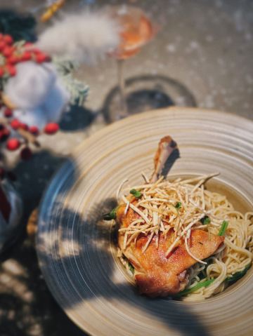 每次去【国金中心商场·上海店】 ,总是会被wuli小伙伴们不约而同PICK到的餐厅,肯定非【Tomacado花厨(国金中心店)】莫属啦,好看好吃还超级有创意,怎么可能不爱上。 👉 油封鸭腿葱油面 法式油封鸭腿➕葱油拌面,真·好玩组合。 难得的是,它家的油封鸭腿不油不腻,外皮还非常酥酥脆脆,配上一口充满着葱油香气的意面,一口大满足~ 👉 香草烤三黄鸡 比起常见的白羽鸡原料的烤鸡,这款三黄鸡烤鸡果然更加鲜嫩又多汁,每次都被一抢而空的烤鸡,只有Ta❗️ 👉 棉花糖热巧克力 一杯冬日不可缺少的甜蜜热巧克力,因为被加上了软软糯糯的狗子棉花糖,简直可爱到犯规。