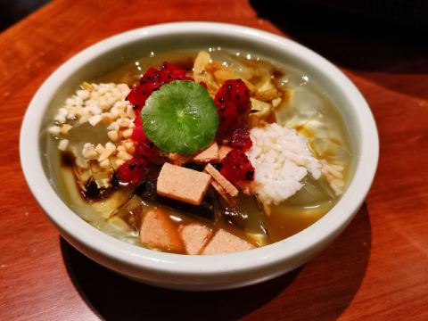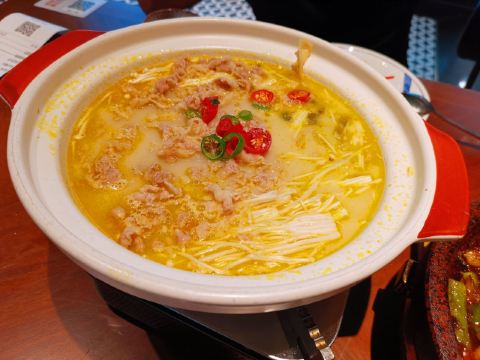 蛋黄鸡翅,石锅海鲜豆腐,糖醋里脊,豆花酸菜鱼,面包遇上冰激凌,石锅牛蛙,蛋黄鸡翅小份,奶香焗南瓜,灵隐素鹅,蒜蓉粉丝开背虾