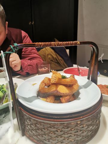 价廉物美,鸡很嫩,鱼入味。豆腐淡了点,糖藕一般般。冰粉好吃。