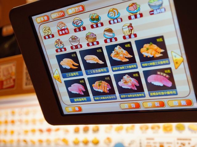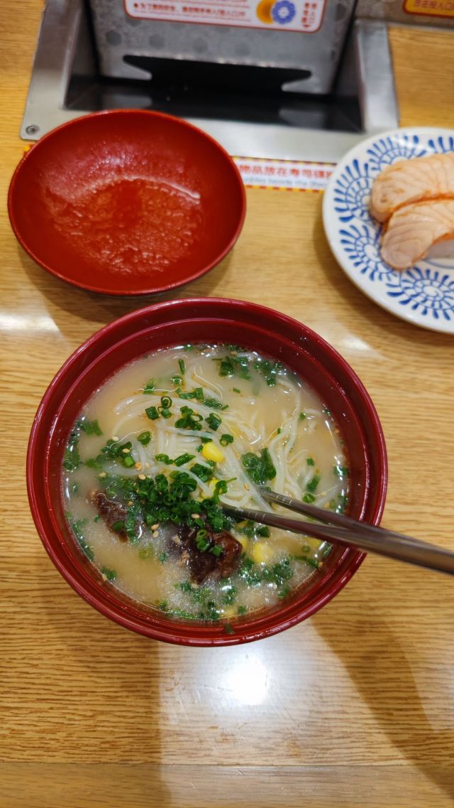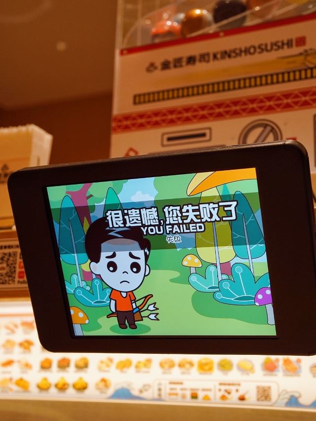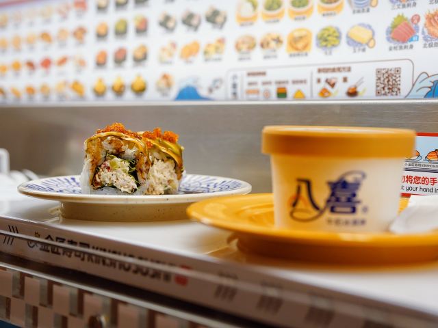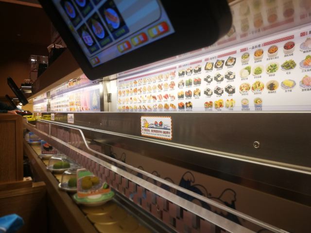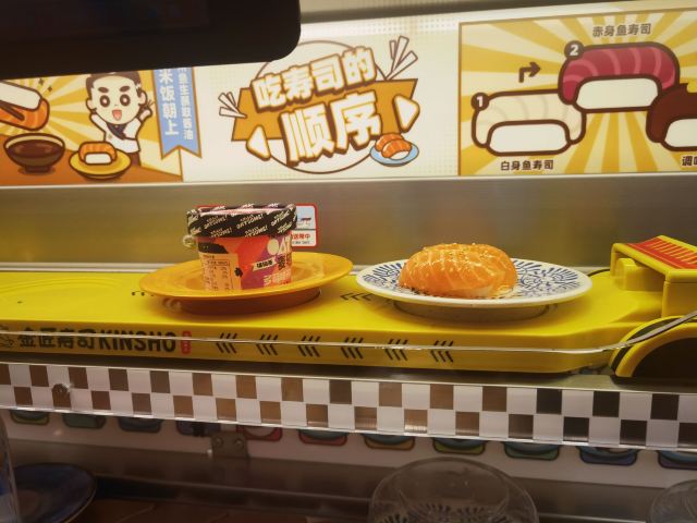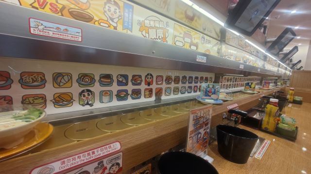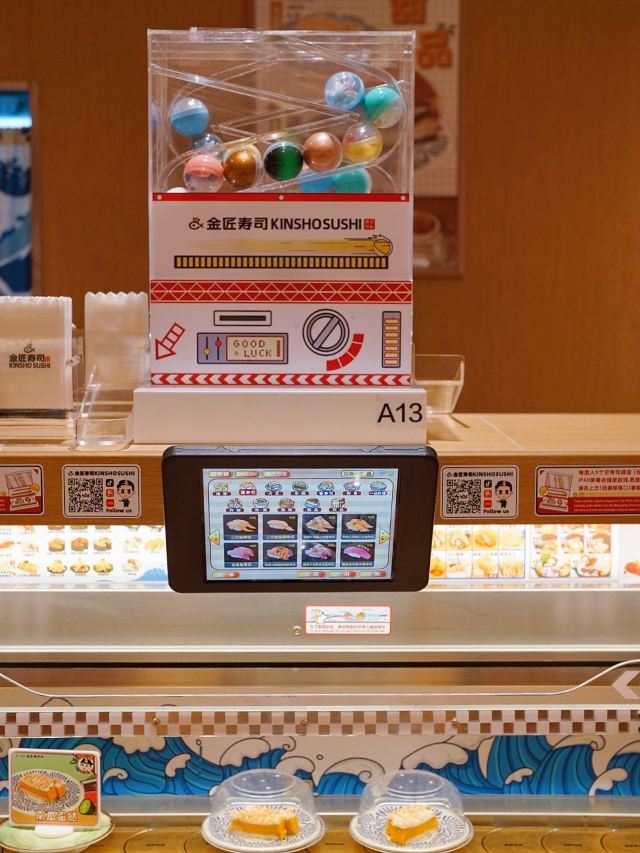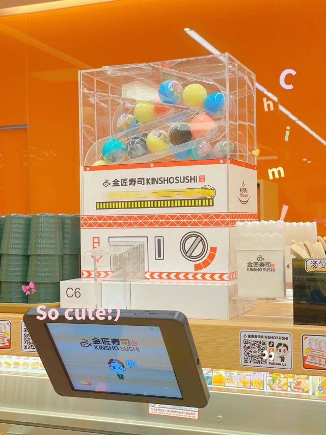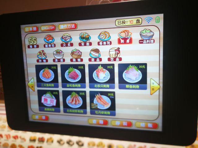 这家店一直是小朋友们的最爱,这天我这个大朋友也忍不住去光临了一下,只要每吃五碟寿司,把盘子丢进去就可以抽奖,也算挺刺激的了,由于是一人时专门做了一个人做吃饭的餐位点单很方便,上菜也很快,分量也正好够一个人吃。