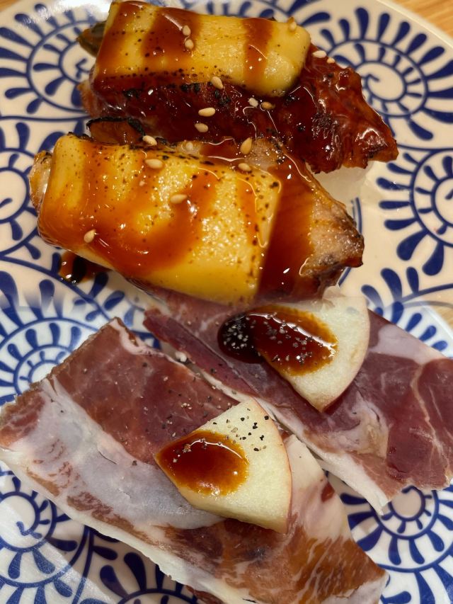 扭蛋,三文鱼寿司,火炙焦糖三文鱼寿司,火炙鳗鱼寿司,三文鱼刺身,寿喜锅,豚骨豚骨拉面,和牛寿司,甜虾刺身,鹅肝寿司,特选鹅肝寿司,南瓜