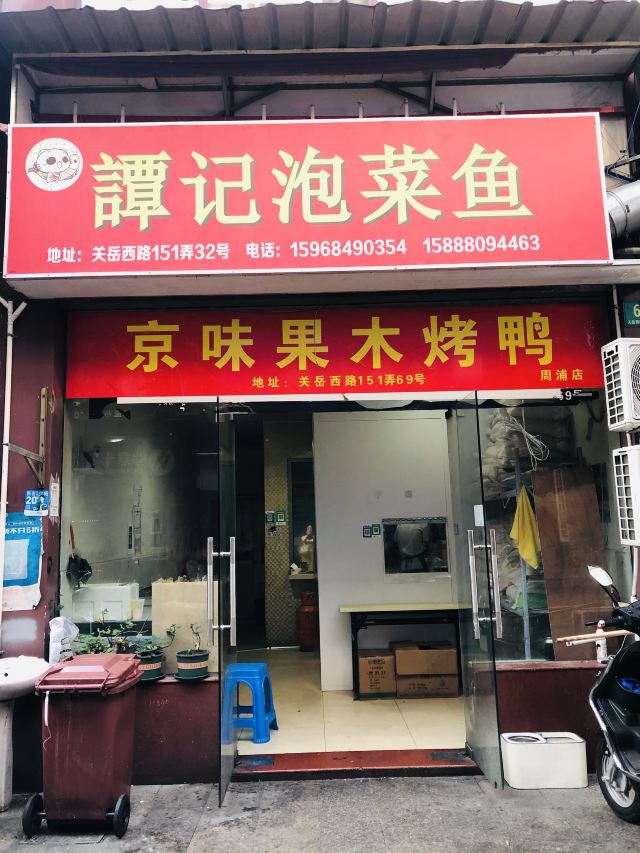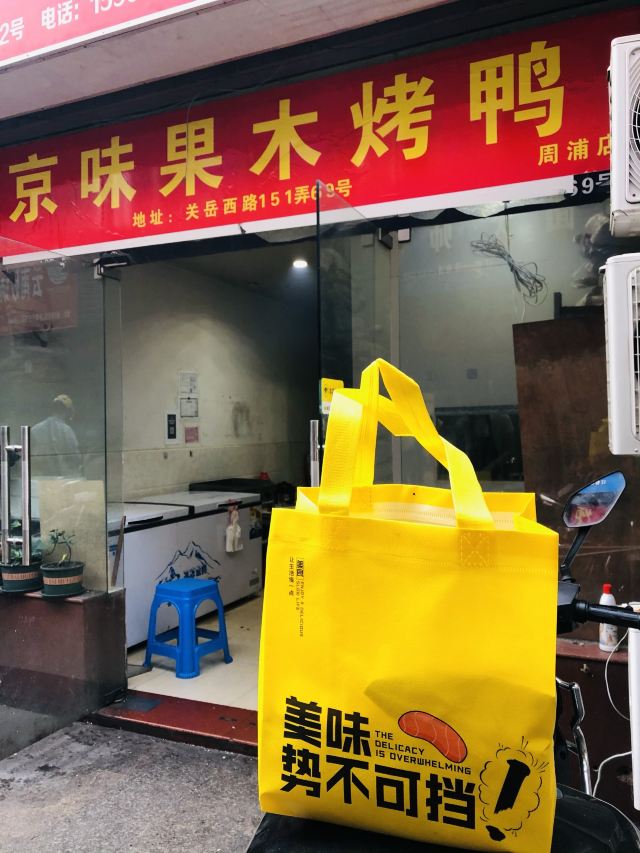 春春vip浦东十八镇周浦第一镇 周浦古城,曾经的辉煌,小上海步行街。 「京味果木烤鸭」位于「小上海休闲广场」内, 入口处,车辆进出,两侧行人通道都堵着,不晓得为撒?就算有,也被石墩堵,人需绕着走。 环境不容乐观,跟着标注的位置还是很容易找到的。 这里看来都是做外卖的,商户鳞次栉比,不提供堂食。京味果木烤鸭也不例外。 小哥哥挺腼腆的,核销订单,让我稍等…… 小姐姐切配👍 一会儿功夫打包出来,啊哟,香气扑鼻,还是忍住带回家吃😋 果然,没有失望,套餐配备齐全(看视频)。 「双人烤鸭套餐」限时秒杀价23.20元/套 味道好极了,只可惜感觉量小。 面饼🫓大概10来张,包裹着烤鸭、黄瓜、京葱、秘制酱料,口口过瘾! 「椒盐鸭架」香气来自于此,好吃😋 「鸡腿」无功无过。 换换口味,可以尝尝,味道不错。 平时上架「双人烤鸭套餐」58卖36元 限时秒杀价23.20元,毕竟可以用积分嘛! 📌tips: 周边商业街区 「万达广场(周浦店)」 「永乐广场」 「荟品仓(康桥店)」(永乐广场4楼) 「周浦小上海步行街」 「东方周浦星市」 「小上海服饰城」 🚌公交多达23条(康沈路关岳路)
