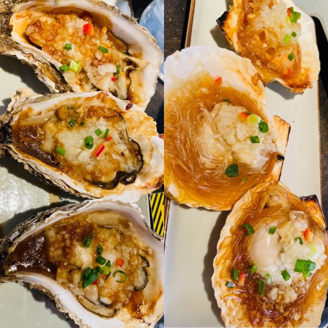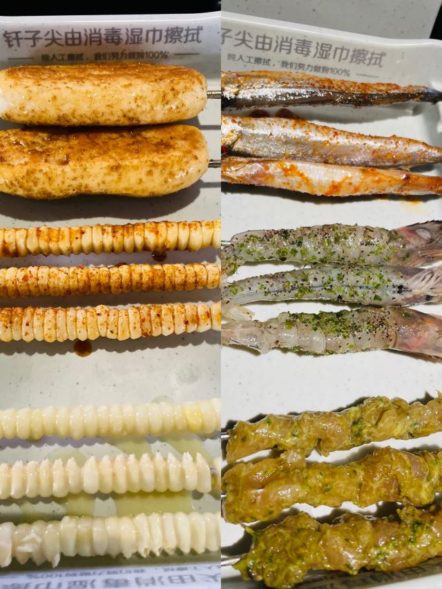 呼伦贝尔羊肉串,冰棒,疙瘩汤,烤生蚝,蒜香鸡翅,烤酸菜,烤玉米,烤扇贝,冷面,五花肉