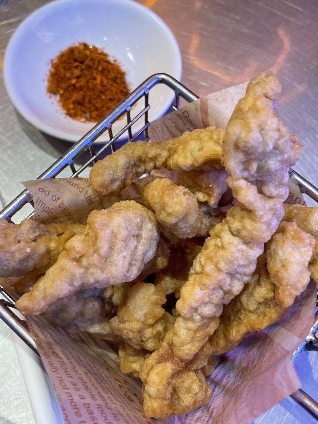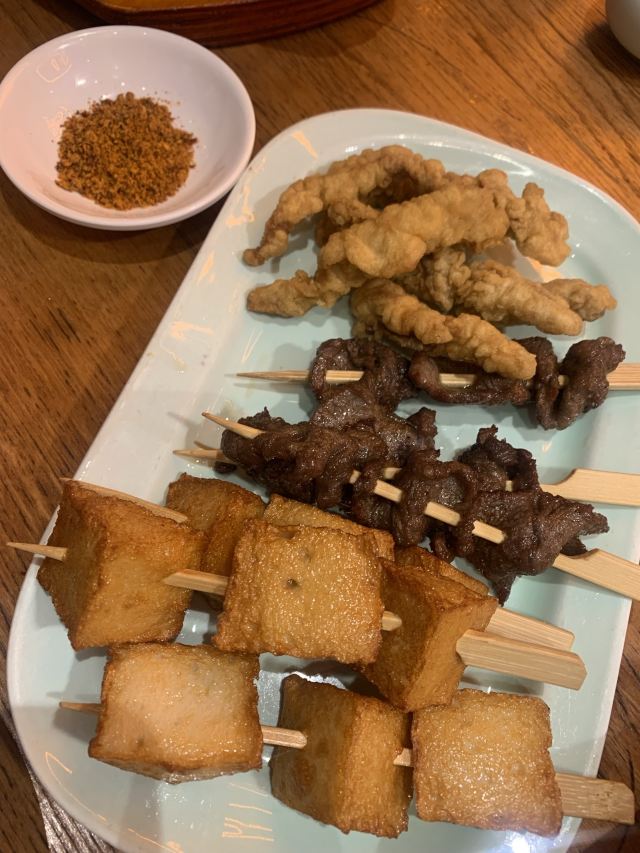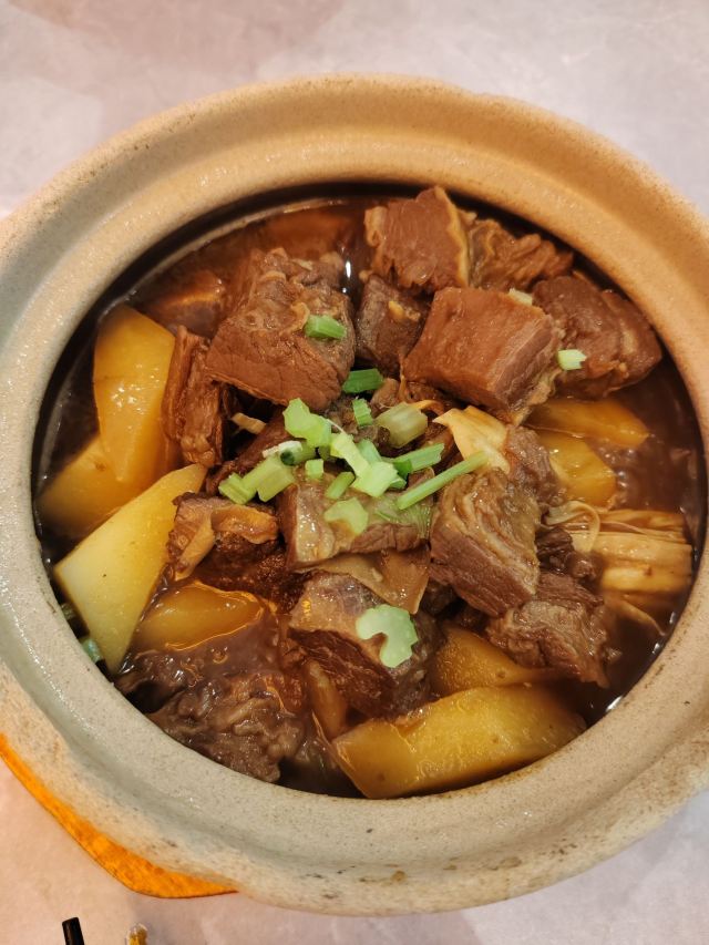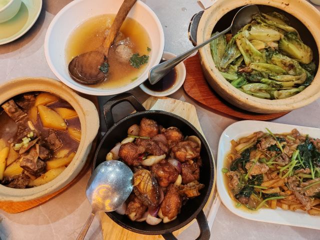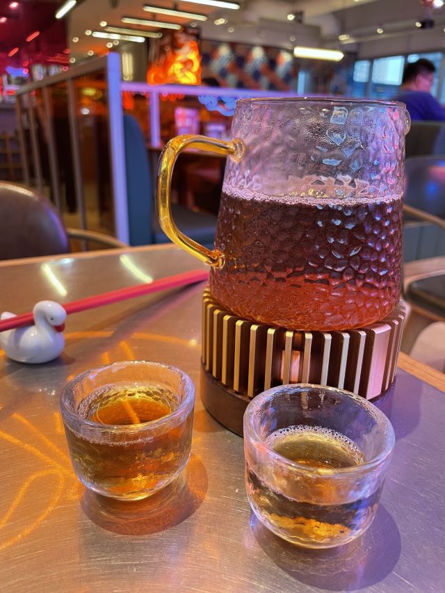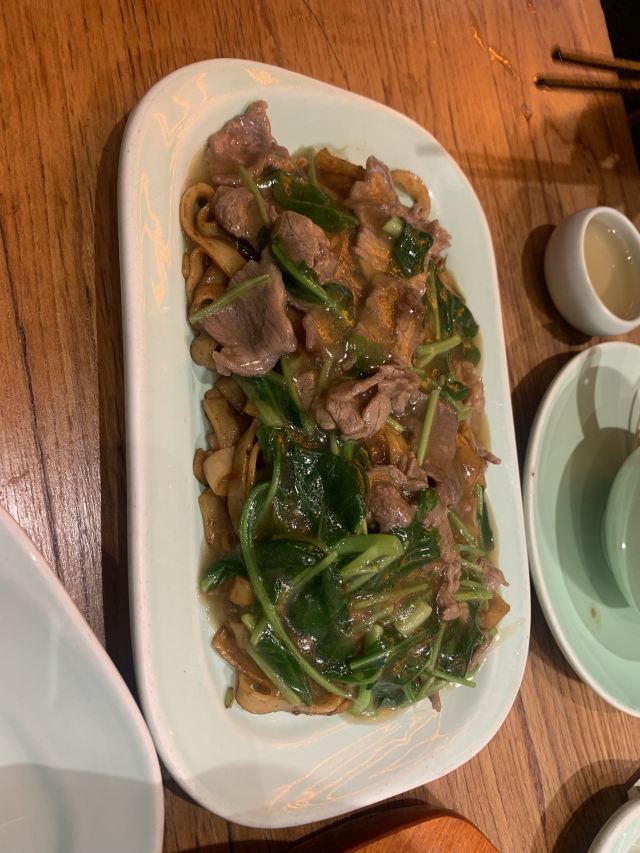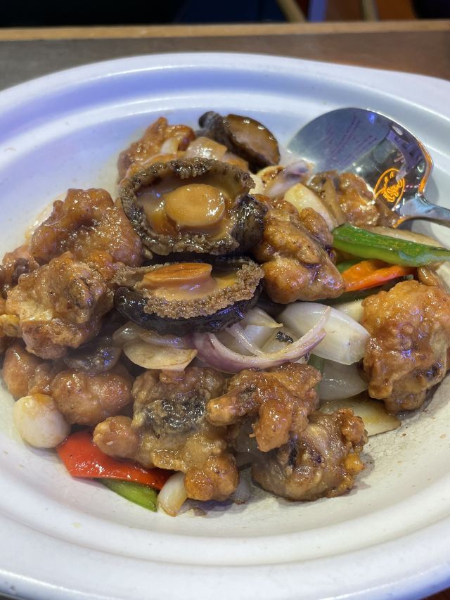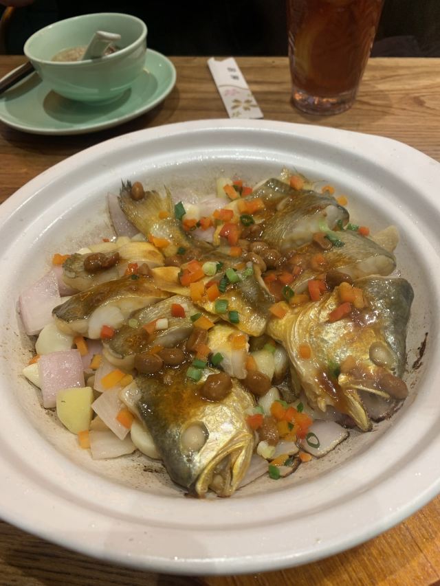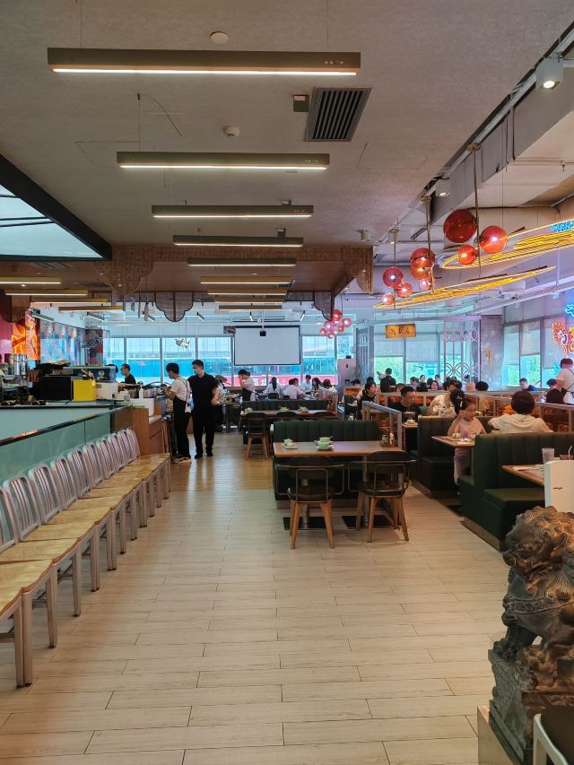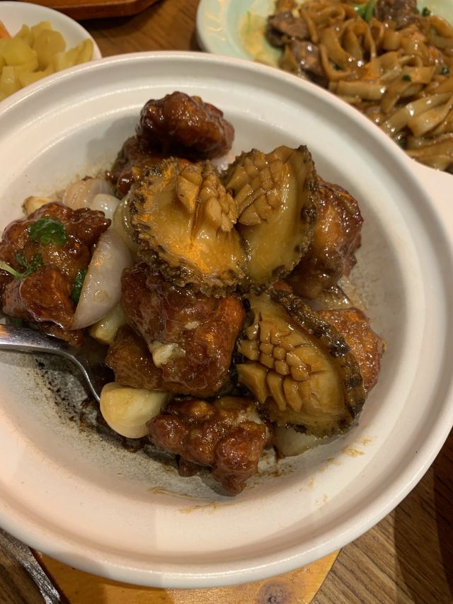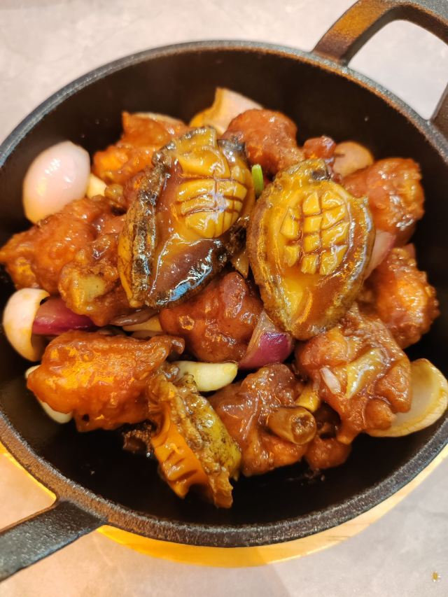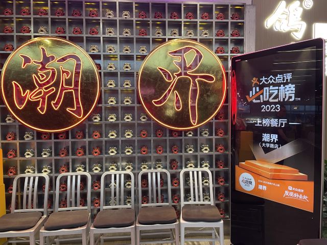焕焕没想到现在潮界有这么多连锁店!最怕连锁店菜品的口味走样,不知道这家首店是否也因连锁而毁坏? 服务:店里不知是前厅领班还是店长的小伙子很有眼力见;店内热水壶里装了茶叶,看我们自带茶叶,立即安排了开水👍差点以为我的单枞就要报废了呢😝一直帮我们盯菜催菜,非常感谢🙏其实正常出品,不着急催菜,菜要一道一道上,足功足火才是品尝最佳。 「潮焗鲍鱼鸡」干香味浓;鲜鲍鲜嫩,鸡腿喷香。 「普宁豆酱焗黄鱼」洋葱蒜头激发香气,解腥增味,普宁豆酱用的很成功,很是下饭。 「潮界生滚牛肉粥」这家店的牛肉粥是我最爱的,之前在其他门店吃到怕怕。而这里牛肉原香,嫩且有牛肉该有的口感。配的萝卜干差点意思,没有合适的菜脯,配点油氽花生米或着小薄脆不是更好的选择? 「虾酱生菜」虽然味道还是好吃的,但是从菜量和扇贝品质等,跟以前差了不是一点哦。 「串串拼盘」好饿,就想来份油炸串串啃起来[色]味道很好,蘸的辣椒粉带孜然味,太冲太西北。我觉得换成纯细辣椒粉会更合粤菜口味。 「潮界卤鹅肝」曾经为了这里的卤鹅,可没少来。这次单点了一份鹅肝,味道还是不错的。 「潮界湿炒牛肉河粉」干炒河粉的锅气配上厚芡的炒牛肉别有一番风味。配菜的橄榄菜很是鲜嫩,点睛之笔。 「鲜柠檬红茶」「桂花酸梅汤」味道很不错哦,没想到每个门店的饮品口味差距也这么大。事实证明用心就能抓住顾客的胃。 大型连锁以后菜品选择和出品虽不如从前,却还是比我去过的其他门店好太多。虽然没有以前这么大的念想,却还是很推荐大家来尝试一下。