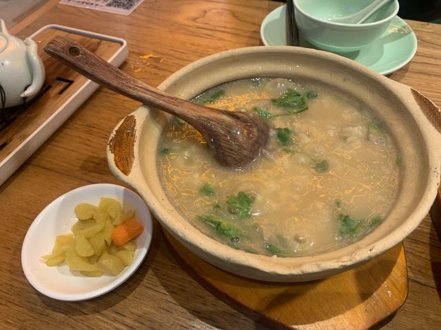 潮界(大学路店) 这家第二次来啦 先给服务点个赞,上菜速度快,服务态度也很好。 潮界生滚牛肉粥 干饭人吃潮界必点粥 潮焗鲍鱼鸡 有小鲍鱼&红椒青椒,香香的 吊龙小炒皇 好吃的 焗生菜 小酥肉 也还不错 冷榨杨梅汁 黄皮茶