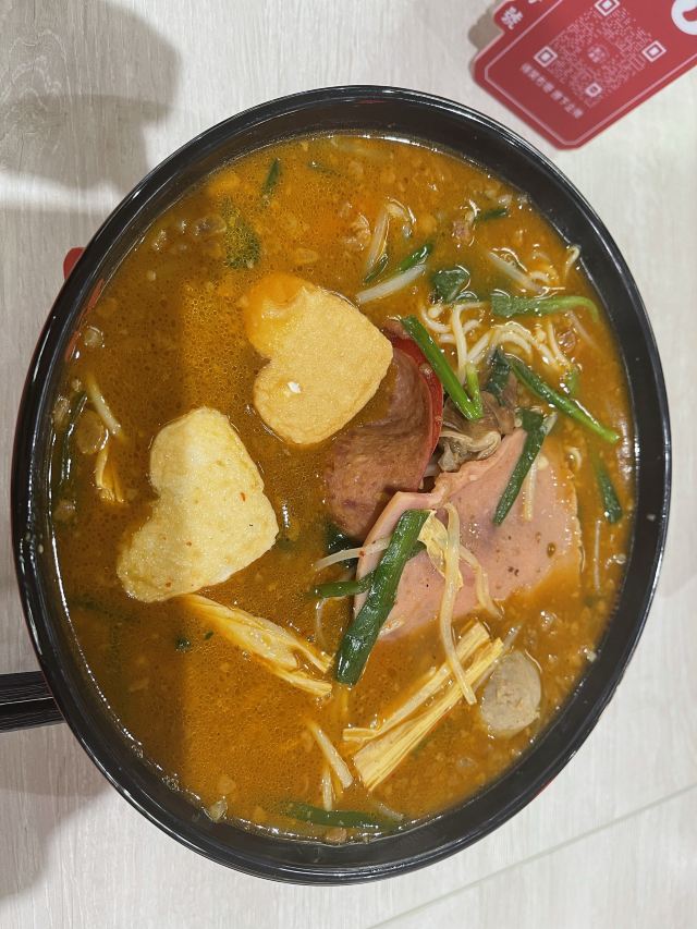 长草已久,竟然遇到了,必须尝试。 有些像日式拉面和麻辣烫一样,是可以自选的,口味配菜都能选。 选了招牌炸酱小锅米线,汤汁非常浓郁,酸甜酸甜的,有点小臭,但就像螺蛳粉一样,越吃越香。 配菜太丰富了,加了肥肠,很好吃。