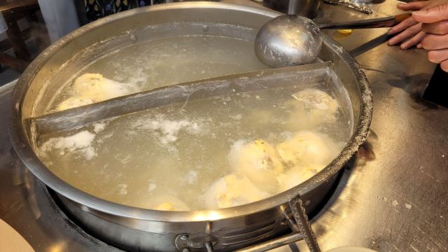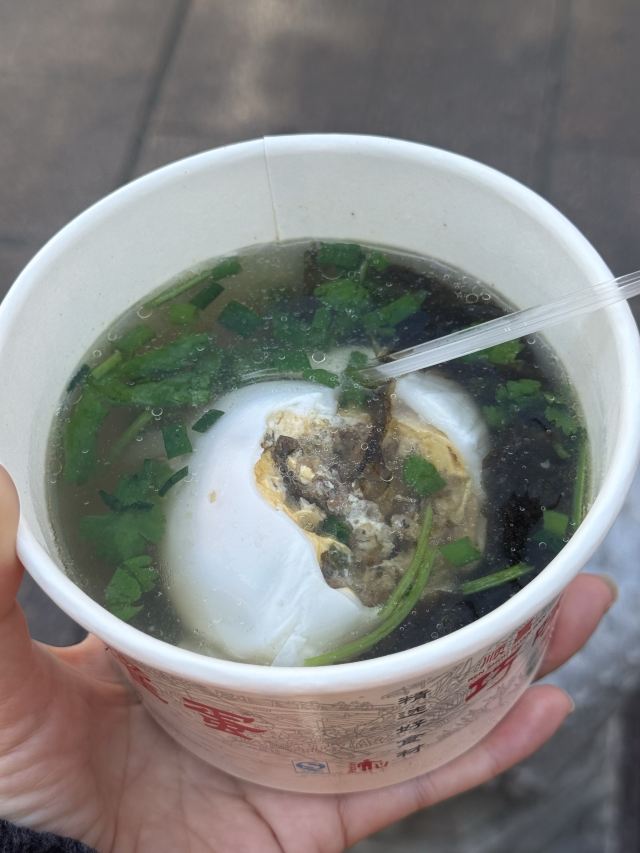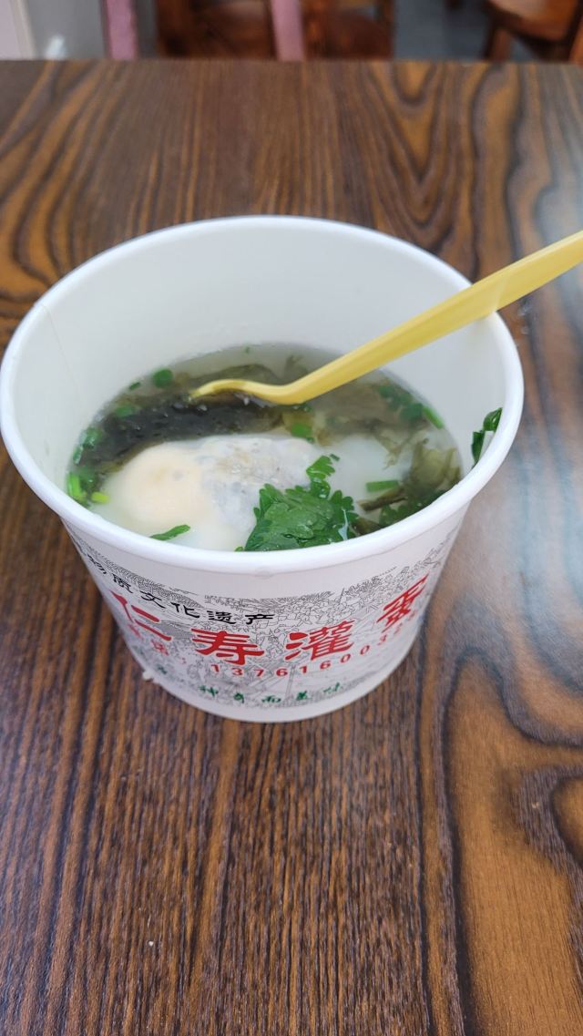 来七宝老街岂能不吃灌蛋呢,也是沪上唯一一家“灌蛋”,作为七宝小吃之一也是“非遗灌蛋” 七宝老街南大街最里,透明制作间清晰可见整个灌蛋制作,很神奇小小灌蛋居然可以灌入那么多 馅料,其神奇之处,在于蛋黄中“料多而不破”。 汤底味鲜灌蛋料足口感层次丰厚。