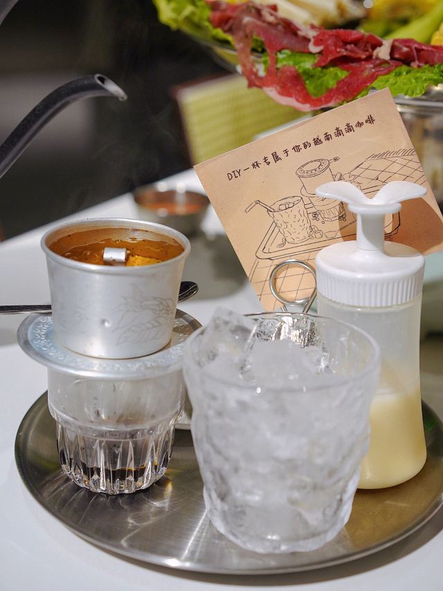 登登登~解锁越南餐厅里的“奇葩”火锅✅只有越南才有的帽子火锅,没想到在我大魔都也能安排上‼️ 双人餐团购价只要¥188,火锅精们冲鸭💃 海鲜牛肉应有尽有,还有五彩缤纷的新鲜时蔬,一锅荟萃所有食材鲜味,浓缩是精华,越煮越香♨️蘸上酱料酸爽又开胃~ 一碗吃出4种牛肉的🍜火车头汤粉🍜,经典中的经典,食粉秘籍💁🏻♀️先喝牛骨汤再快乐嗦粉,豆芽罗勒随意加,还可以挤点青柠汁🍋放入指天椒🌶️,酸酸辣辣更开胃,泡熟后的牛肉片,捞出蘸酱更添美味🥢 现点现冲的☕️越南滴滴咖啡☕️,瞬间将仪式感拉满📈用滴滴壶萃取约8分钟,随后倒入装满冰块的杯中🧊再加入15g炼乳,够苦够甜够香够浓,才是一杯越南滴滴咖啡的正确打开方式✔️ 奶茶精我本命,在登乐1元就能喝到网红泰式奶茶🧋奶茶一杯快乐加倍📈收藏➕打卡还送宋卡虾片哟🆓