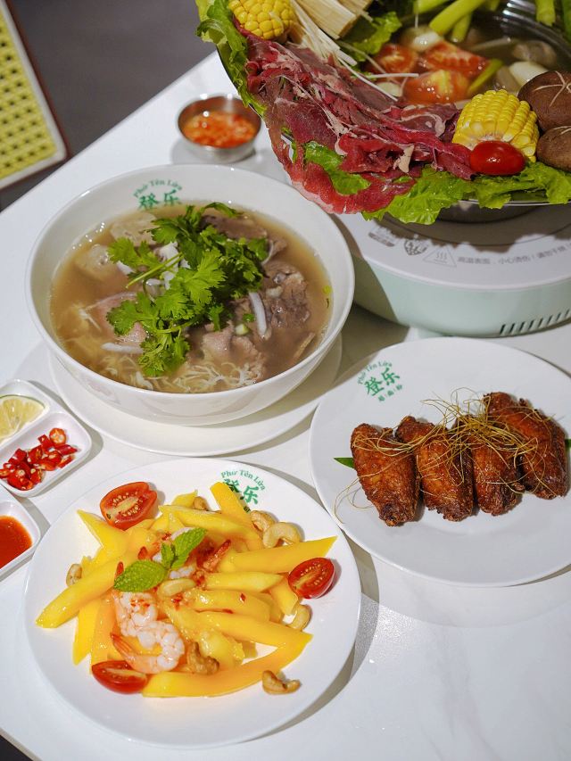 加油干饭呀登登登~解锁越南餐厅里的“奇葩”火锅✅只有越南才有的帽子火锅,没想到在我大魔都也能安排上‼️ 双人餐团购价只要¥188,火锅精们冲鸭💃 海鲜牛肉应有尽有,还有五彩缤纷的新鲜时蔬,一锅荟萃所有食材鲜味,浓缩是精华,越煮越香♨️蘸上酱料酸爽又开胃~ 一碗吃出4种牛肉的🍜火车头汤粉🍜,经典中的经典,食粉秘籍💁🏻♀️先喝牛骨汤再快乐嗦粉,豆芽罗勒随意加,还可以挤点青柠汁🍋放入指天椒🌶️,酸酸辣辣更开胃,泡熟后的牛肉片,捞出蘸酱更添美味🥢 现点现冲的☕️越南滴滴咖啡☕️,瞬间将仪式感拉满📈用滴滴壶萃取约8分钟,随后倒入装满冰块的杯中🧊再加入15g炼乳,够苦够甜够香够浓,才是一杯越南滴滴咖啡的正确打开方式✔️ 奶茶精我本命,在登乐1元就能喝到网红泰式奶茶🧋奶茶一杯快乐加倍📈收藏➕打卡还送宋卡虾片哟🆓