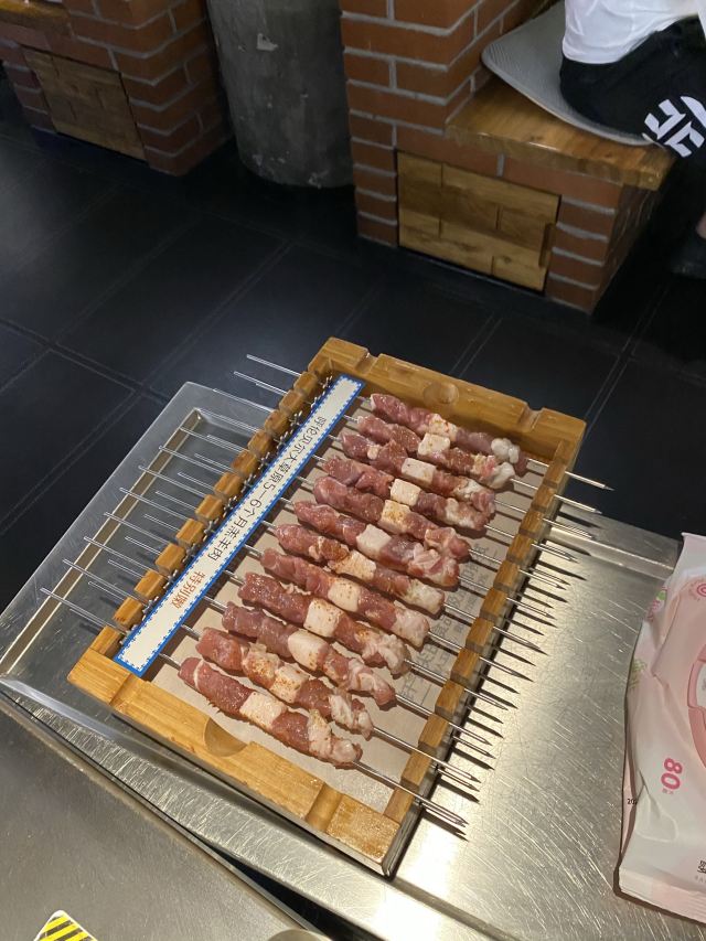 除了羊肉串从呼伦贝尔来的肉质比较好,味道就好吃,其他的鸡翅,鸡胗,鱼豆腐等都是冷冻食品,腌制了很久了,不好吃! 服务还是不错的,一直会帮你放串烤,熟了放置上面