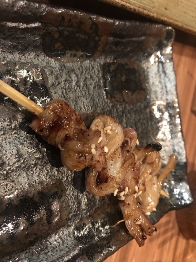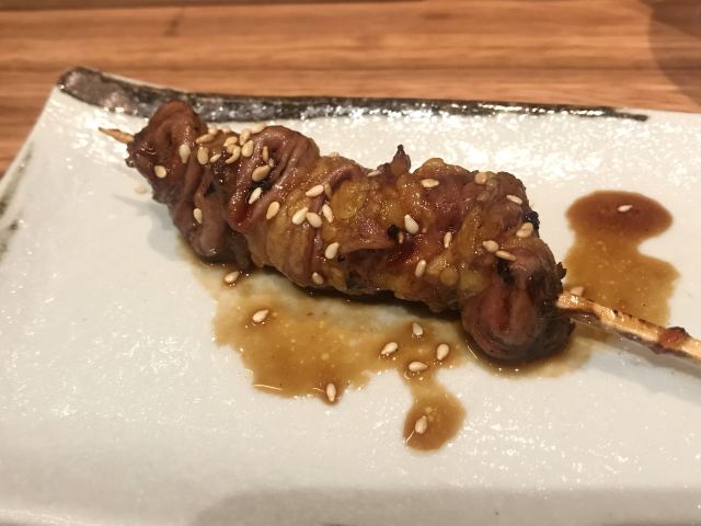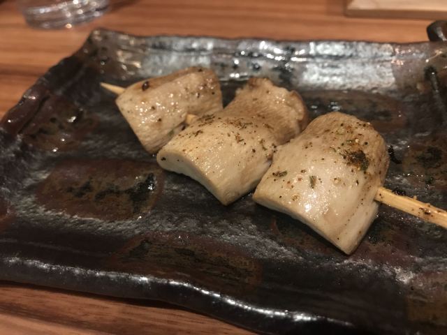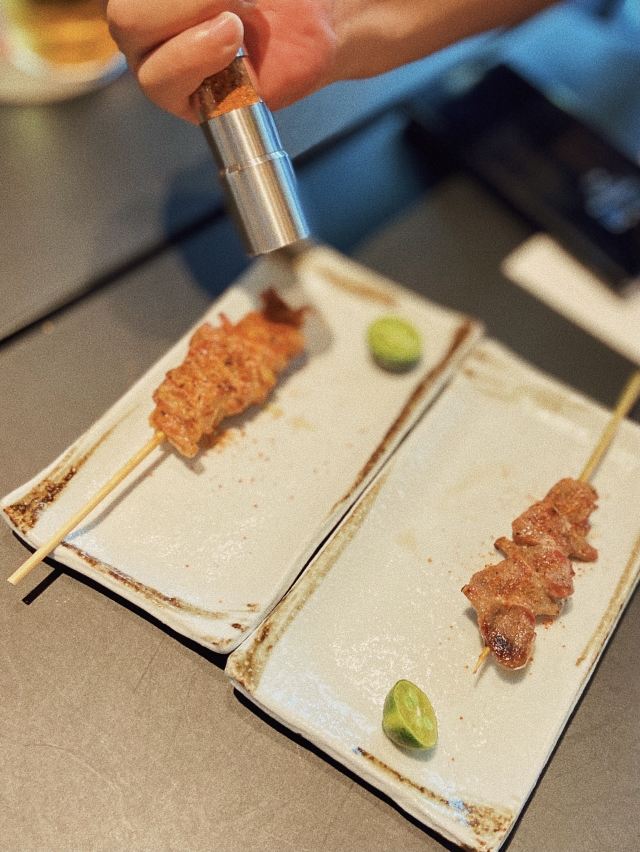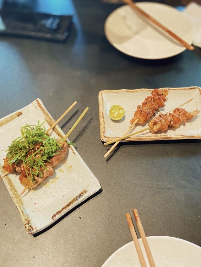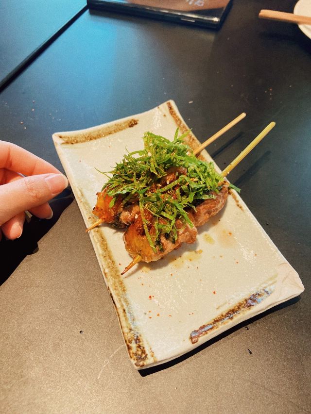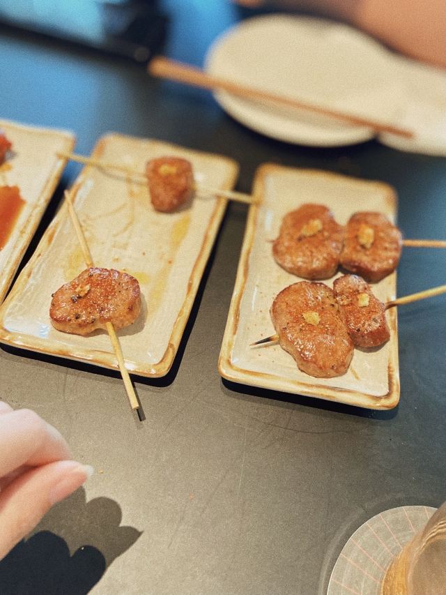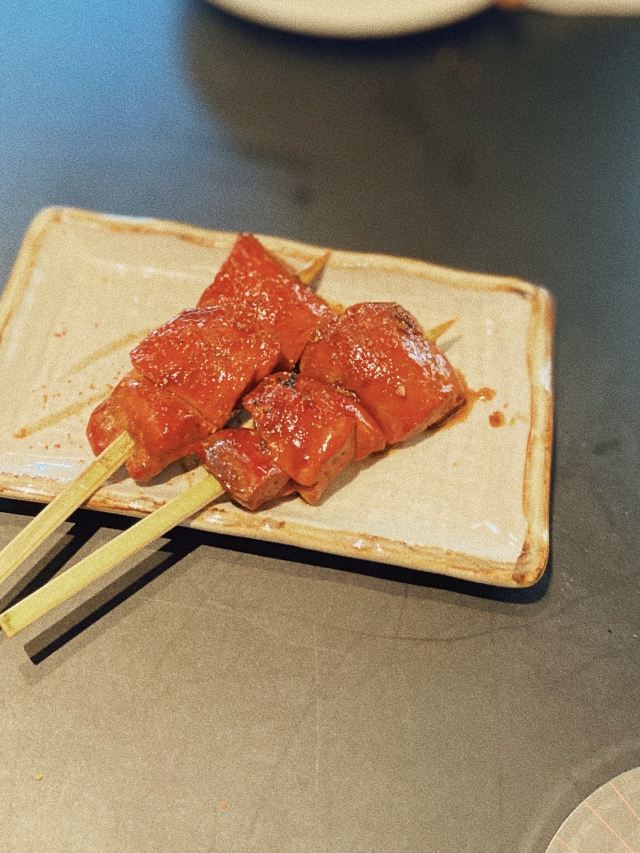 紫苏鸡腿肉 这个不错,新鲜紫苏味道很特别。 鸡肝慕斯 酥脆面包片打底,有点吃鹅肝的感觉 牛舌 鲜嫩多汁一点也不老,烧烤功底可以哟 鸡肝 有一丝丝甜味,嫩滑,加单了 青椒鸡杂 这个弗兰人都觉得有点辣,好入味,好喜欢。