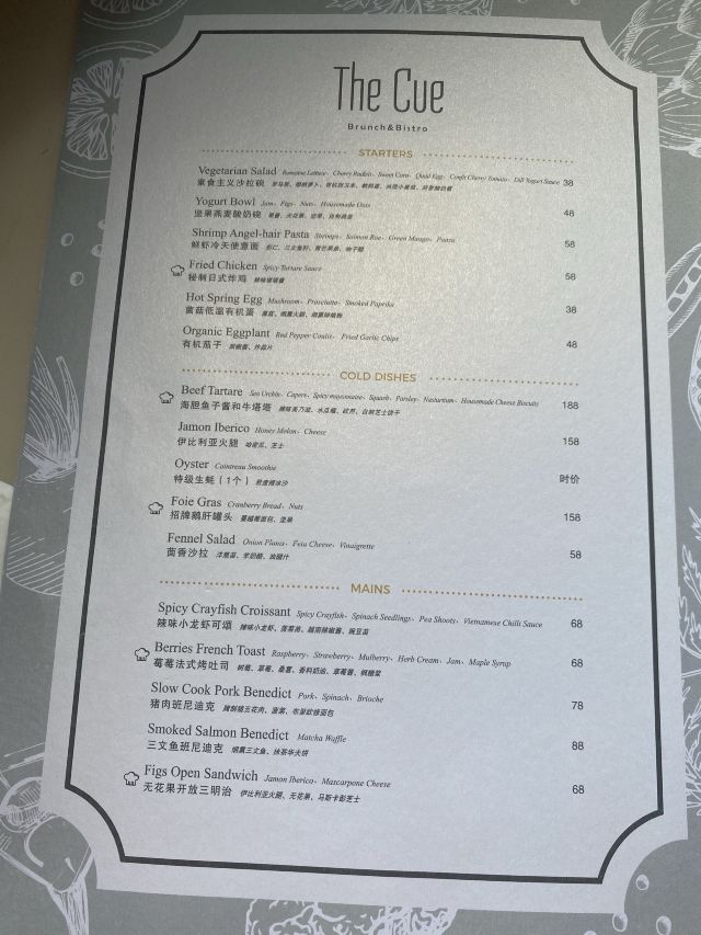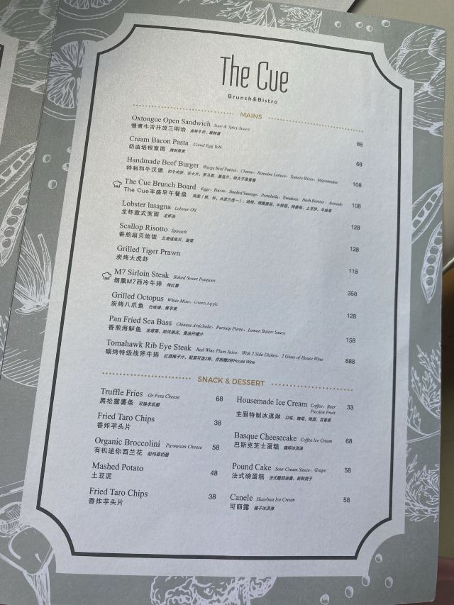 秘制炸鸡,波士顿龙虾意式宽面,香煎扇贝烩饭,辣味小龙虾可颂,莓莓法式烤吐司,坚果燕麦酸奶碗,招牌定制鸡尾酒,烤牛舌色拉佐黑醋汁,西西里,覆盆子百香果,荔枝西柚乳酸菌气泡