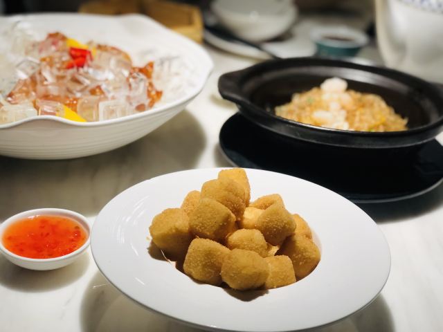 陶陶居大虾饺,一口酥豆腐,酥皮水牛奶菠萝包,陶陶居百年烧鹅,百搭酱皇蒸凤爪,顺德大良双皮奶,啫啫生菜煲,卡珍芝士糯米鸡,锦绣海鲜红米肠,明炉香滑靓葡挞