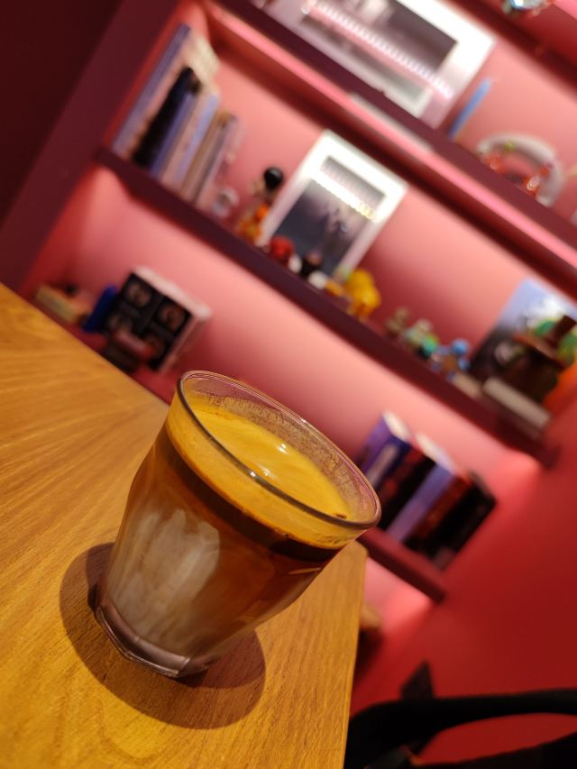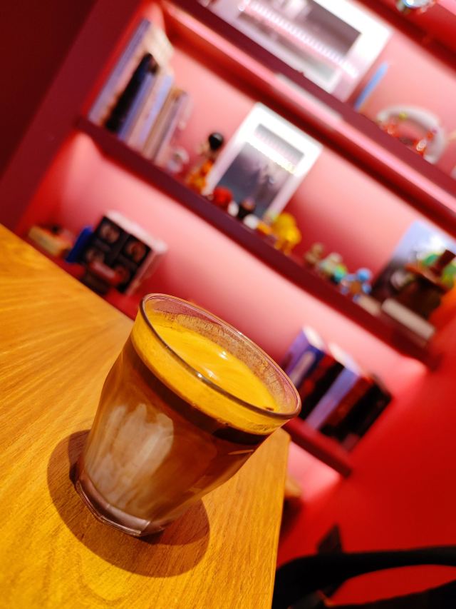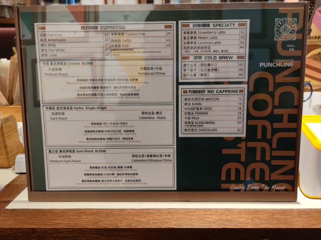 机缘巧合前不久朋友提起过这家店,附近找喝的时候正好看到,要不是如此找到这家开在小区里店太难太难啦 沿街几家店铺貌似都是和同济合作的,Punchline除了这个很有意思的名字之外,店面的布置也很有特色,有几间小房间组合而成,随处可见的工艺品也添色不少。 说回咖啡,这家有三台磨豆机分别是2款拼配和1款soe,这个我见到的不多,选了一款中烘的拼配dirty,都还不错,层次感微微欠缺一点点。 店里生意很好,没来得及和咖啡师询问为什么取这个名字,下次吧!