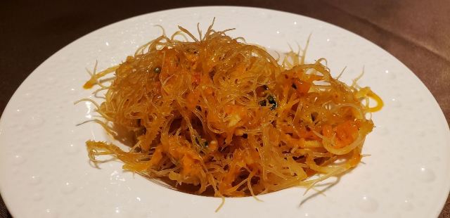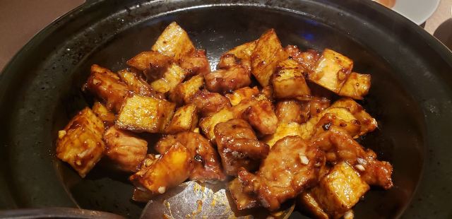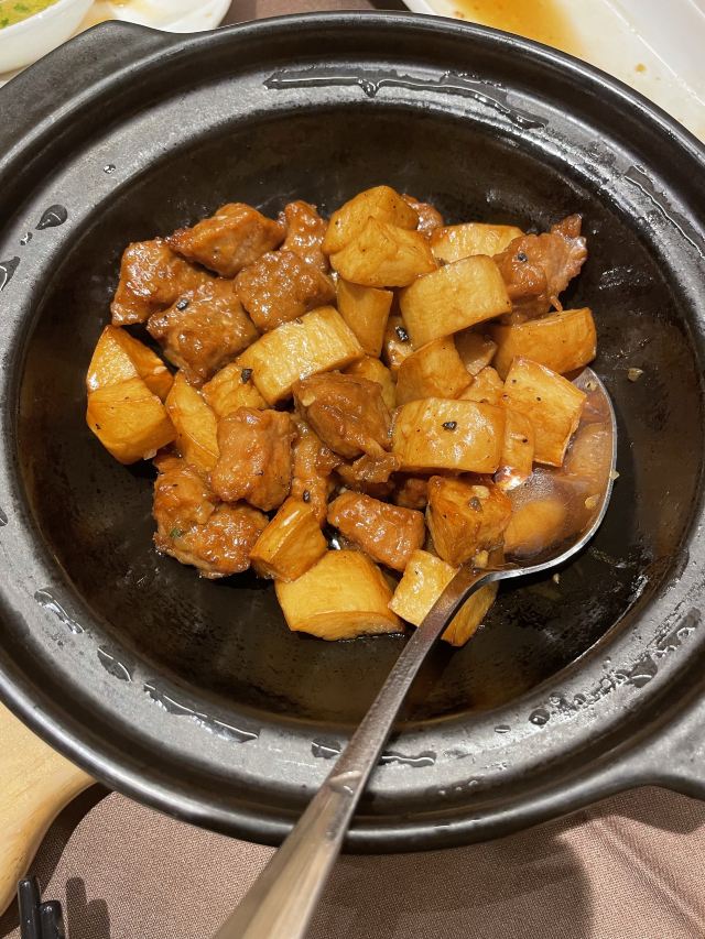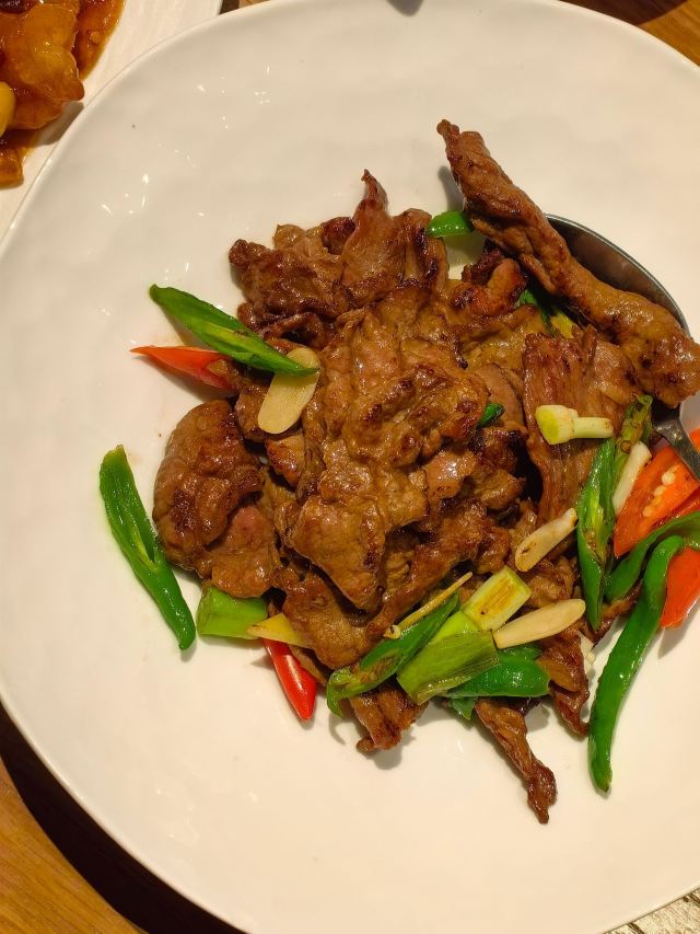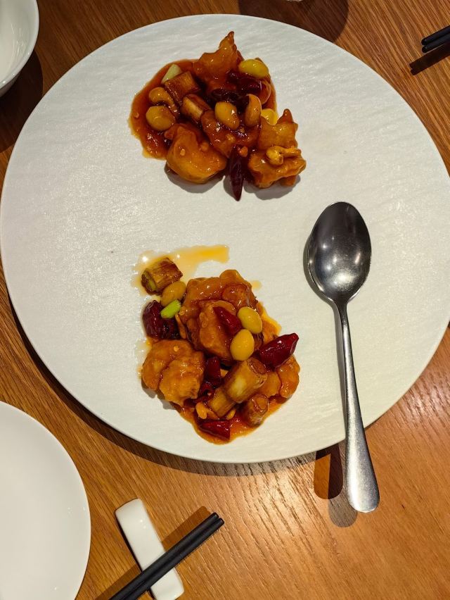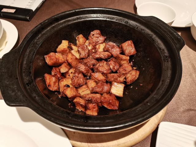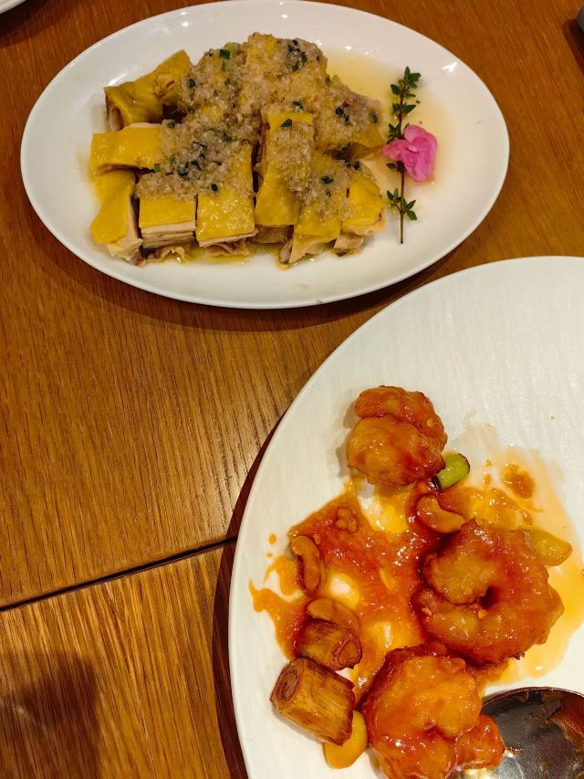 带母上大人上饭店|恒悦荟•精致粤菜(香港广场店) 香港广场三楼的“恒悦荟”,母上大人说好久没有来了,也不知道她什么时候来过?谁带她来的?只能团一个,带她带来。 环境很舒适,座位很宽松,服务也很好,菜肴很精致,每个菜味道在母上大人心趴,难怪她念念不忘。 宫保大虾球,酸甜中来了点辣,虾个头大,肉有弹性,配有白果、腰果等,口感更丰富了。 煎焗金钱牛展,牛肉很嫩,咸淡适中,量比较大。 顺德鱼腐煮胜瓜,很清爽 沙姜鸡,一般般啦。