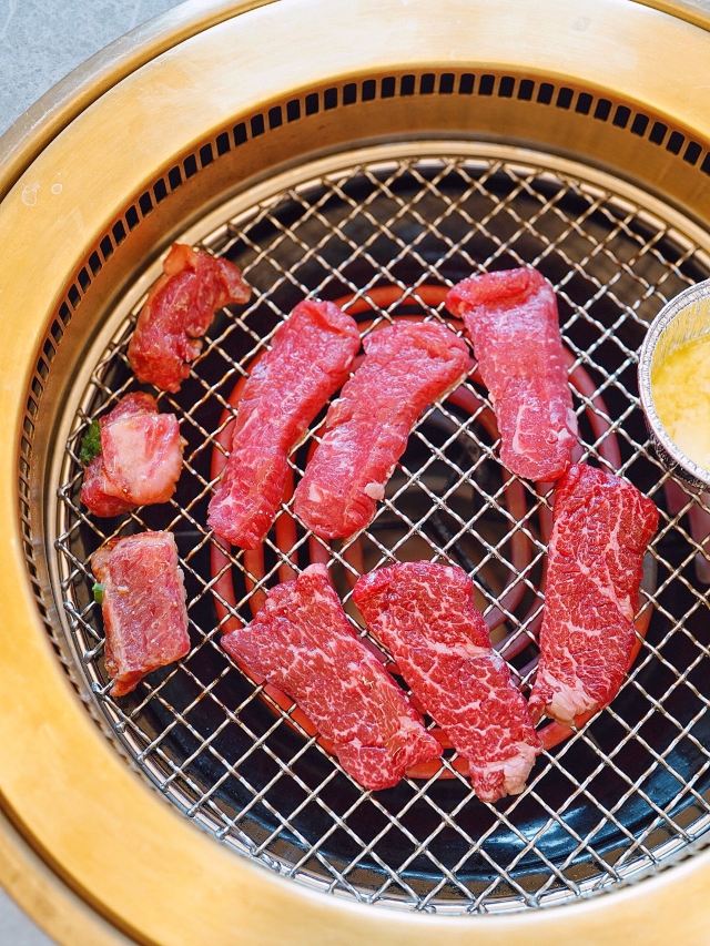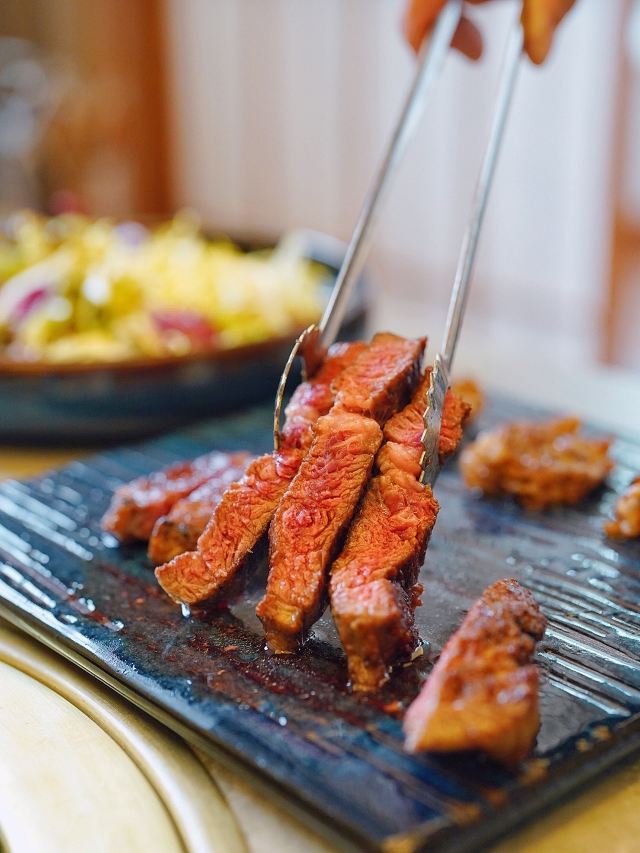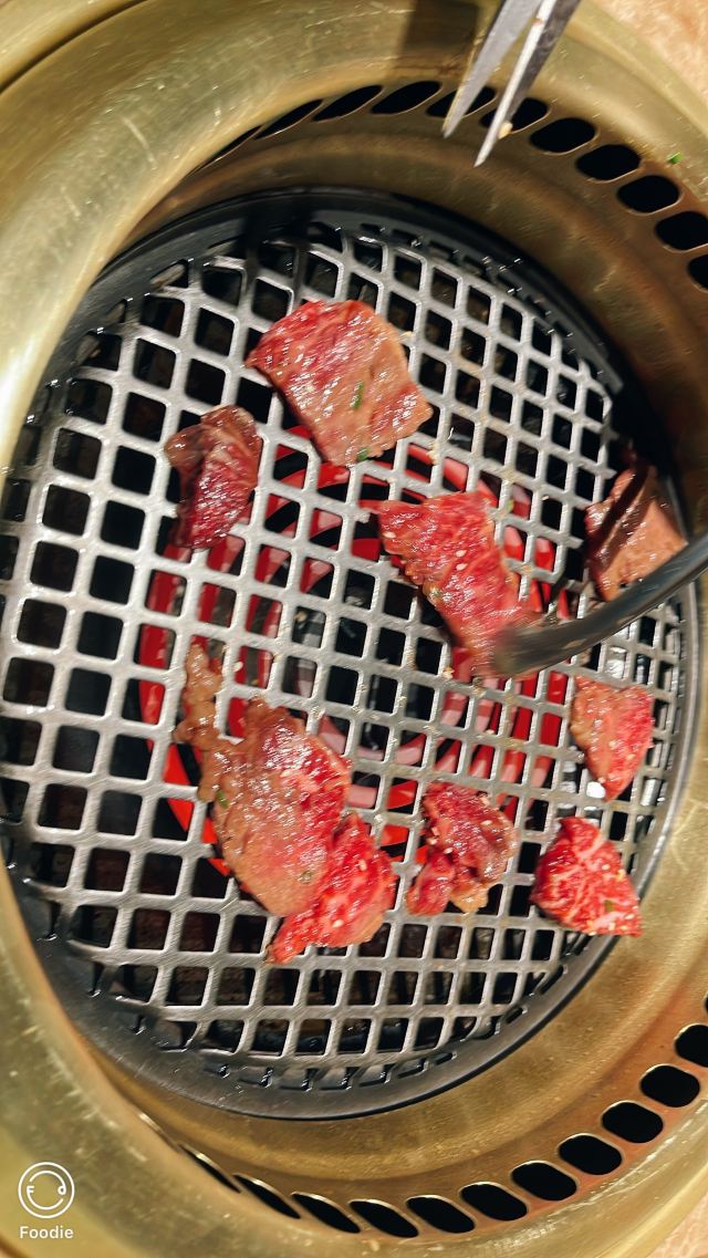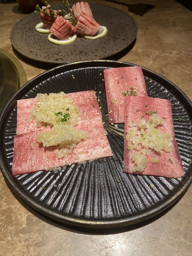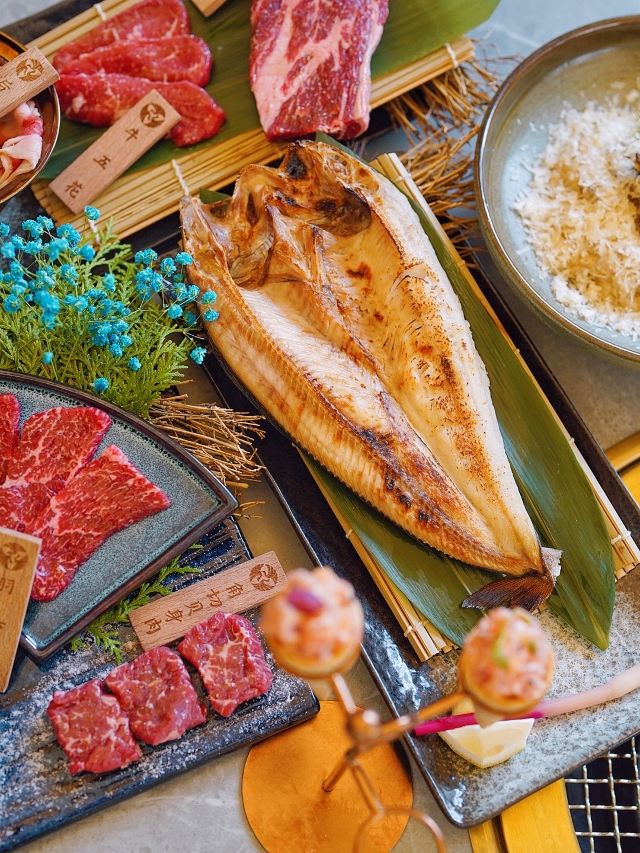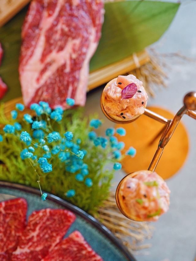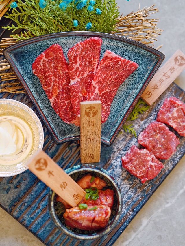 加油干饭呀滋味醇厚的日式烧肉,不受烟雾缭绕的困扰,佐上清酒与蘸料后,还能将肉味最大程度饱满化,一口入魂的美妙滋味,让灵魂都感受到肉香~ 🍱葳鹤甄选牛肉盛合🍱 后腹肉+本日牛排+牛五花+羽下肉+牛肋条+角切贝身肉,纯手工现切,一份就能吃遍牛肉中的精华!无论是口感、嫩度、弹性、肥瘦比例都是牛肉的上品,特别爱角切贝身肉(牛腹部)入口层次感太棒!几乎所有的背身肉都是我吃的…太好吃了😋 🥩本日牛排🥩 大理石纹路清晰可见,肉质也是一等一的优秀,雪花细密透露出新鲜,咬下去的一瞬间就惊艳了味蕾,口感嫩滑,肉汁在口腔中进发,呈现牛排最原味的香! 🥘牛肝菌松露炖饭🥘 醇厚的黑松露和鲜嫩的牛肝菌像两个相识多年的老友,搭配优质的意大利米,有相辅相成的默契,帕尔玛奶酪充分包裹住每一粒米饭,米饭软度适中,吃起来奶香浓郁而柔和,两个人刚刚好,吃完有种满足感