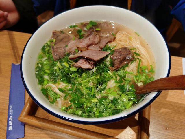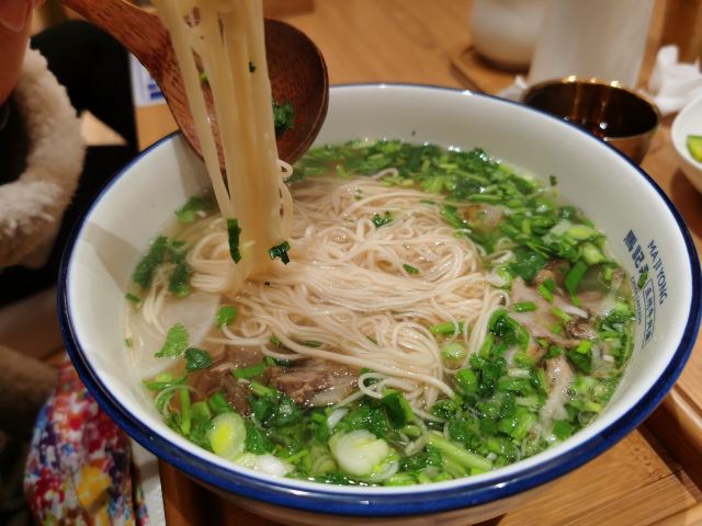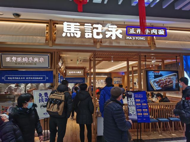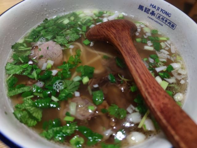有人戏称中国有三大美食——兰州拉面、沙县小吃和黄焖鸡米饭。 其中兰州拉面绝对是三兄弟中的大哥。但兰州拉面实际是错误的说法,真正的名字应该是兰州牛肉面。 兰州牛肉面起源于清嘉庆年间,创始人是国子监太学生陈维精,兰州牛肉面是一道常见的面食,也是兰州的传统名食。它具有“一清、二白、三红、四绿、五黄”的特征。 这两年兰州牛肉面好像成为了投资的新蓝海,仅在上海就如同雨后春笋。这其中马记永绝对是其中的佼佼者。 这家马记永在博乐路大润发一层,嘉定绝对不是的市中心。 |兰州牛肉面^面非常劲道,牛肉真的是大块,量也很足,汤非常浓郁,回味无穷。 |钢钎羊肉小串^要的不辣的,火候掌握的不错,味道很赞,就是串有点小,没有吃够。 |兰州烤饼^烤的很赞,外脆里嫩,非常香。 |凉菜三拼^中规中矩,推荐兰州泡菜,味道还不错。