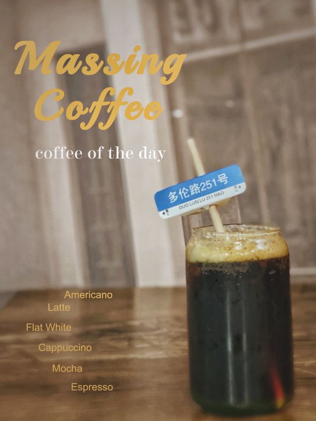 曾经,这里被称做窦乐安路。 曾经,这里坐落着一间有着特殊意义的咖啡馆。 时移世易,多伦路上的Ta,用另一种方式还原 & 致敬。 📍 名称:「MASSING COFFEE公啡咖啡·多伦路店」 店铺地址:多伦路251号(多伦文化艺术空间左侧) 营业时间:09:30-22:00 📣 优惠提示: 目前店铺有buy 1 get 1 🆓活动,记得咨询barista参加哦,超级划算der! ☕️ 口味: 「青提气泡冰美式」⭐️⭐️⭐️⭐️ 拼配豆子与青提果酱的CP,出乎意料地不戳,苏打水的气泡感让苦与甜,变得更加均衡,爱。 「美式咖啡」⭐️⭐️⭐️⭐️ 选择的是云南豆子的SOE冰美式,双重发酵的工艺,带来明亮清爽的酒香口感。 褪去寻常咖啡铺子的喧嚣浮躁,「MASSING COFFEE公啡咖啡·多伦路店」果然真·隐世宝藏店。