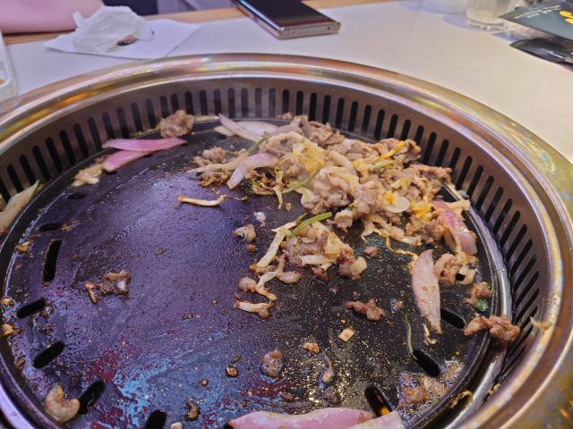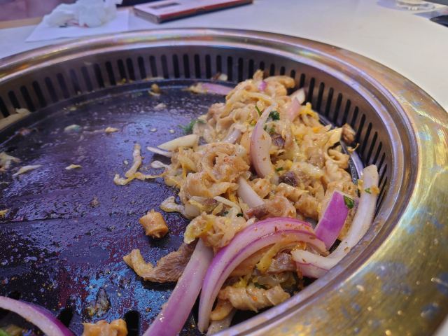 今天中午跟朋友去吃了齐齐哈尔烤肉,可惜烤韩肠没有到位,点了2份酸菜,3分肉,分别是肥牛、胸口肉和牛腩筋,1份生菜,牛腩筋不好吃,没有总店好吃,齐齐哈尔烤肉的灵魂真的就在于那个烤肉加酸菜,洋葱有点多,哈哈