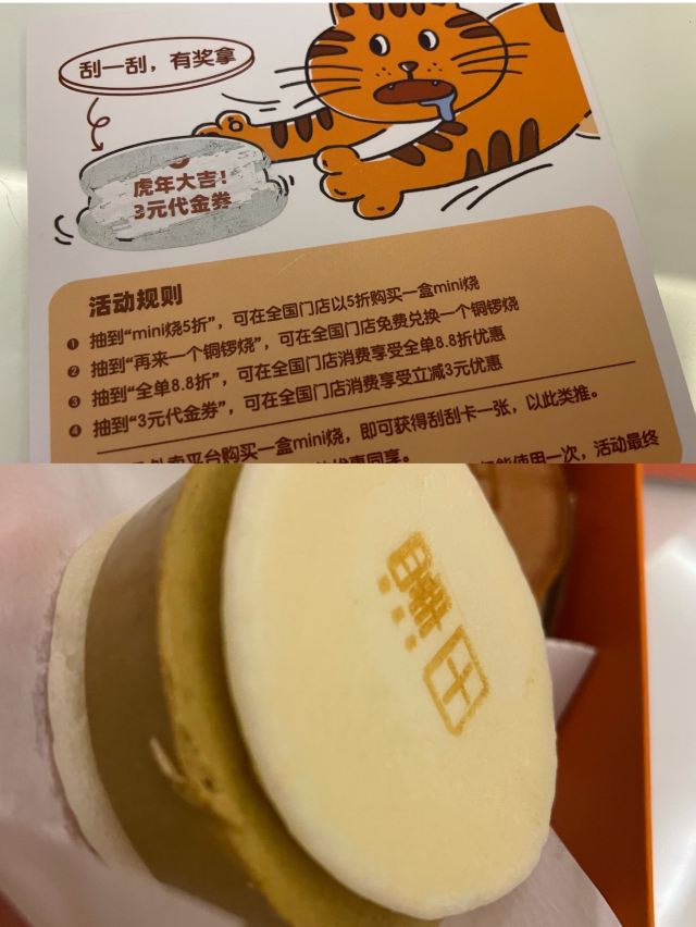 泽田本家又双叒叕开新店啦 每一份铜锣烧都是现点现做 淋酱、煎烤、烙印一气呵成 精心制作的饼皮冷藏1小时 你会惊讶地发现冷着更好吃 特别设计的“开口笑”式撕拉包装 从中间延虚线撕开就能轻松开吃 全程不会脏手👋细节感满分💯 最喜欢🍪奥利奥芝士🍪,不用扭一扭舔一舔,直接张开嘴大口咬!扑满扑满的奥利奥饼干碎,搭配浓郁冻芝士层,实力圈粉⭕️ 听说越小越得宠❓每日限售的全网独家🧡mini铜锣烧🧡,既是颜值担当也是断货王,🈶️开心果、跳跳糖、巧克力、焦糖,创意口味Q萌造型,精致到不忍下口。 就算错过新店开业买1送1也没关系,还有买10送1长期福利等着你,泽田铜锣烧超级时髦的集章大法,集齐10个印章即可获得任意口味铜锣烧一个哟🆓