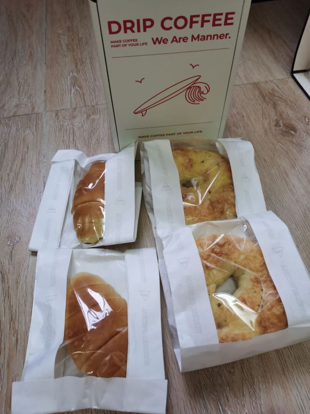 疫情期间难得开门营业的咖啡店,买了面包+挂耳的套餐 挂耳风味是随机的,收到的是黑巧克风味,是比较喜欢的深烘风味。 网上评论褒贬不一,但个人喝下来味道还是不错的,挂耳包一开始滤水性还可以的,后面滤水有点慢。海盐面包挺松软的,微微的咸味。芝香培根个头大,培根和芝士的香气。