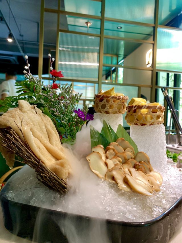 素午餐肉,椒盐灰树花,芥末芝士丸,素排,手工现做蛋饺,黑松露炒饭,番茄锅底,松茸汤包,菌菇汤,炸豆皮,炸猪排,菌菇锅底,素食火锅,野荠菜菌菇大馄饨,野生黄香竹荪,格格春卷,铁板泰式自制豆腐,绝味牛肝菌,烤松茸,菌菇蛋饺,菌菇拼盘