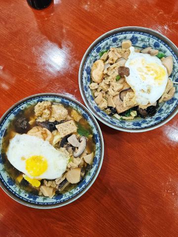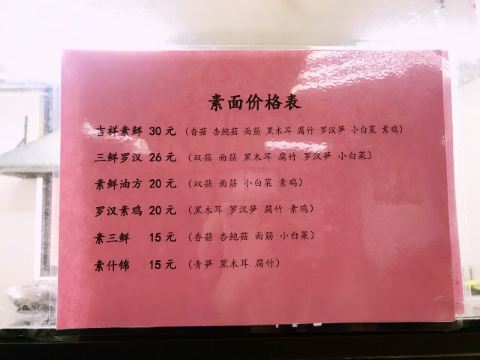 🍜吉祥如意 2025-1-6 逛到一半时间 正好也是饭点了 而且逛寺庙 素斋也算是一个打卡项目啦 素斋馆在三楼 有电梯 也可以走上去 就在观音阁旁边 【环境】 地方不大的 大概7 8个大台子 很清爽 生意一般般 跟市中心的素斋馆不好比 【口味】 |吉祥如意面^30,还是蛮贵的 不过胜在浇头非常多 吃到后面竟然也是饱透饱透😃就是出品很不稳定 同时出来的一毛一样两碗面 一碗汤水几乎没有了是拌面了😒荷包蛋是另外再加点的 【服务】 不是很好 有点凶巴巴的