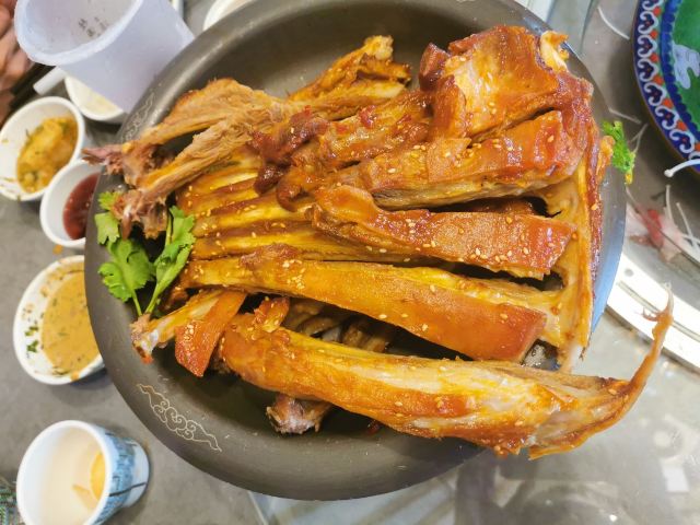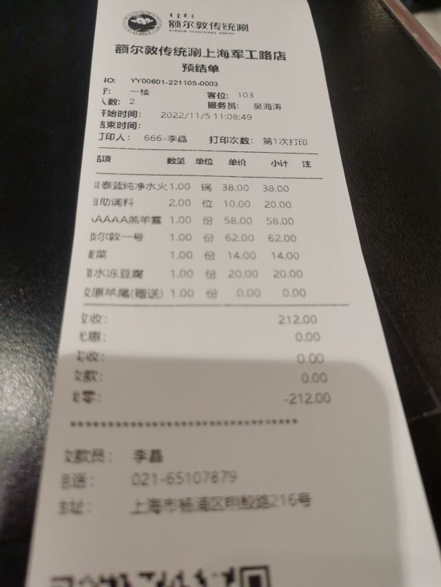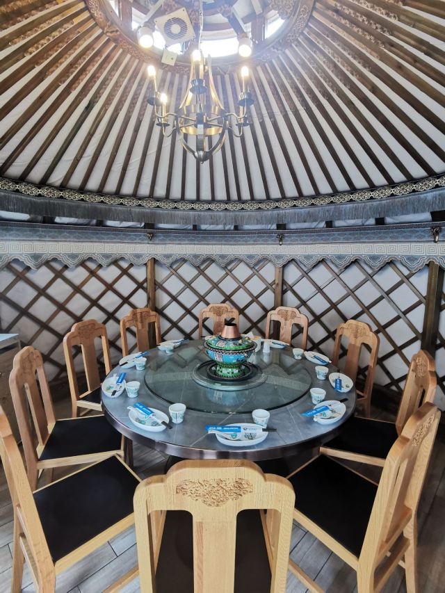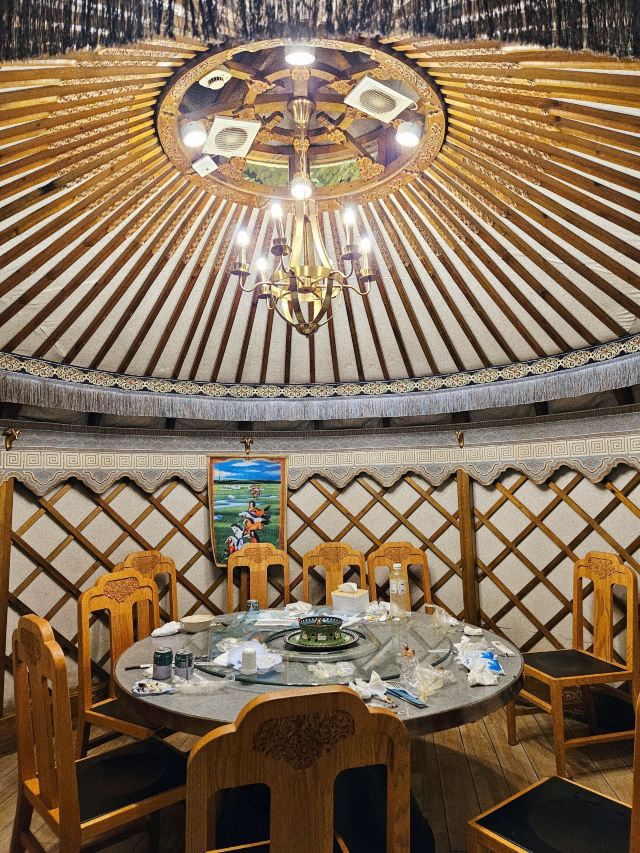 实叶熏【环境】 餐厅位于杨浦区翔殷路靠近军工路上。已经来了几次了。这次人多选了特色的蒙古包,体验感十足。提醒各位怕热的小伙伴,会稍微比餐厅里面的热点。毕竟立式空调不如中央空调给力。我体验下来我觉得可以接受。 【服务】 蒙古包里有服务铃,一按就来,服务满分。 【口味】 额尔敦烤羊排,是真的好吃,一定要点!下次我要带更多人来试试烤全羊。 羊围脖,这个视觉效果很棒,味道也好,推荐 蒙古奶茶,一直很喜欢喝咸奶茶,这个味道很喜欢。友情提醒,它是热的,不建议天热就着火锅喝,会更热🥵 我已经来了好多次了,下次要吃烤全羊,收藏起来,一直回来光顾。