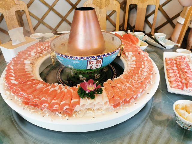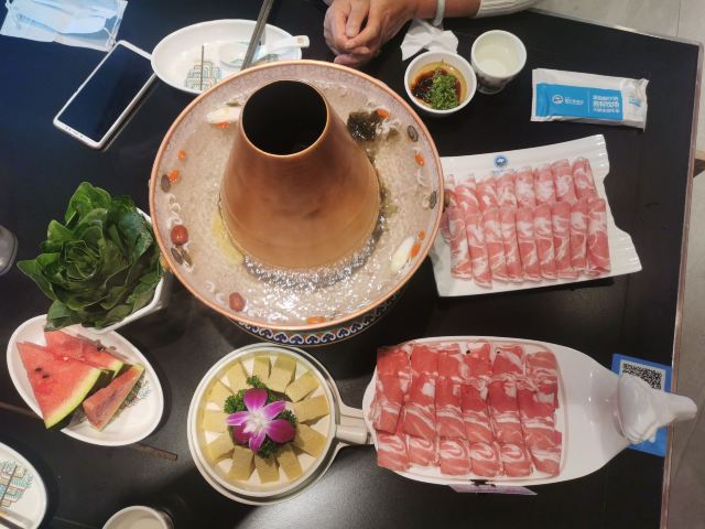 amydog😍终于见到了蒙古包 2023-11-23 咦...今晚哪能又吃肉肉啦🥩因为...因为...天冷啦😋 好想对小哥哥说 快来个科目三吧👻👻👻 蒙古包和想象中的差距很大 外面既不漂亮里面也不好玩 不用召集八个人去坐蒙古包啦👿 【口味】 |羊肉烧麦(4只)^20 很好吃呢 想起了之前在西贝吃过的羊肉烧麦 都是一样的美味 一点没有羊肉怪味道 没有蘸任何调料最好吃 |脆脆虾^一份6只 都是蛮大的虾 而且很新鲜 吃到嘴巴里有弹性 |草原自制酸奶^自己再拌点西瓜进去 就更加美味 可是...火锅最重要是的肉肉鸭🥩 却是肉质平平毫不出色 小料台上的西瓜非常好 还有糖蒜都是免费无限极供应 优秀了 生意是真的很好 据说上周五是要排队半小时以上 这个周五不晓得是不是捡了个漏 6点半左右到的 直接入场了 【环境】 一楼都是小桌 不过也会分割区域还有卡座 私密性还不错 但是当天很吵 好像是有公司在团建还是什么 喝酒很喧闹 二楼全部是包房 离开时听到有人打电话过来预定1.6的18人房间 厉害 还看到了其他桌子点了网红羊围脖 好兴奋 圈圈的158套餐 适合打卡尝试真不错 🚙 用餐免费停车2小时