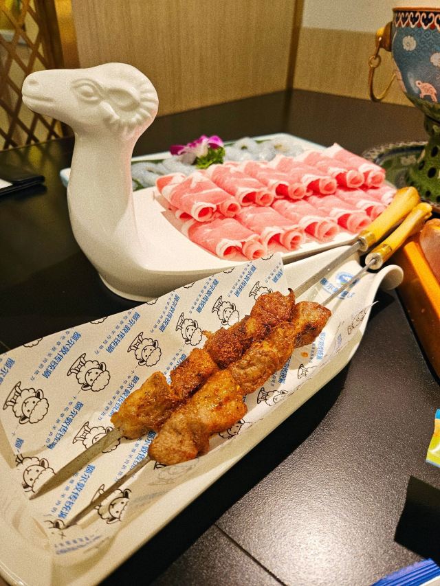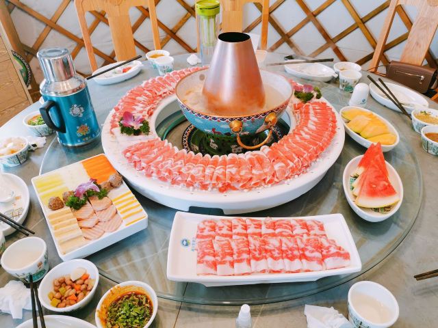 AAAAA羔羊雪花肉,羊肉串,原创羊围脖,草原自制酸奶,额尔敦烤包子,鲜切羊腿肉,景泰蓝胶原羊尾火锅,小羊布丁,牛肉丸,元宝肉