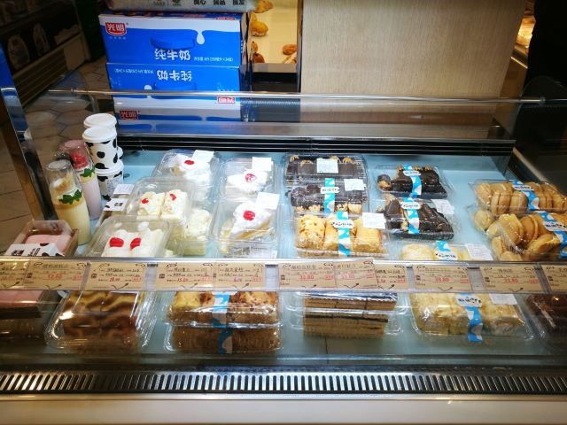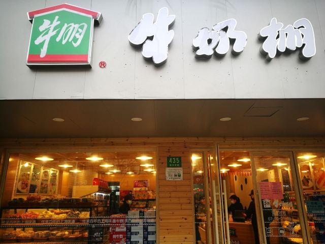 大型牛奶企业旗下的连锁门店。 整洁的店堂里,干净的货架上,展示着品类繁多的牛奶制品、奶香浓郁的中西式糕点,买上一点,品上一口,都是很实惠的~