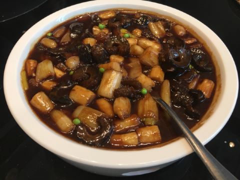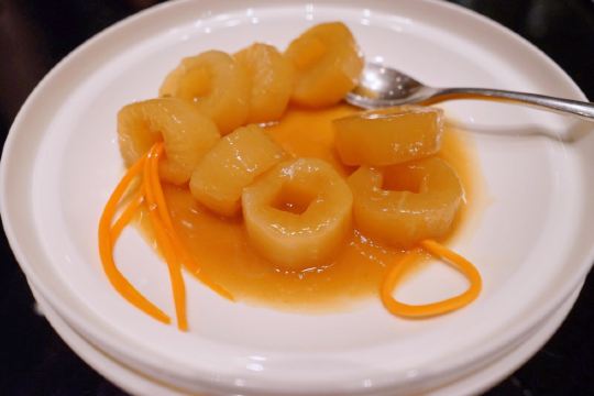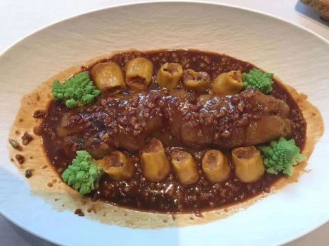 蛋花食游记店内的菜品统统选用优选有机时令蔬菜烹制,契合五星,适时而食,也不会添加添加剂调味料,让食客放心享用健康美食,同时餐厅也会根据个人需求定制化餐单,高档优雅,十分适合商务宴请。 [环境]装修风格可谓是独具特色,整体呈暖色调风格,原木风格的家具给人大自然的气息。身临其境中,有种曲径通幽见禅意的意境。墙边成列着 各式精美的艺术品更添高雅的气质和浓厚的文化传统。 红焖龙趸,龙趸鱼号称斑鱼之王,是顶级的海鲜珍肴,有这么一种说法,如果没尝过龙趸,绝对算不上合格的美食家.可见龙趸在美食圈的地 位。店家用的是传统的客家红焖,煨制而成。上桌色泽红润,香味浓郁,光看就让人食欲大开.尝了一口,鱼皮爽口韧弹,肉质非常入味,口 感像棉花般的柔软细腻,两种不同的口感在口腔里融为一体,鲜而不腥,郁而不腻,每一口都有不同的感觉,好吃 杏仁烧汁牛肉,肉用的是顶级的雪龙牛肉,这可是世界上唯一一款可以和日本和牛媲美的牛肉。店家以位菜的形式呈现,色泽鲜明,油光发 亮。入口肉质细嫩,绵软,入口即化,牛肉特有的油脂味绵密香醇,在唇齿间化为甘甜。咀嚼的幸福感实在难以形容,一道令人回味无穷的 美食。 竹筒汤五鲜,用的是鸡,腰果,竹荪,松茸,菌菇等五种滋补食材炖煮的汤品。上桌后汤头清澈,一看就是微火长时间慢炖后的效果。尝了 一口,入口不冲,很天然的鲜味,夹杂着淡淡的鸡香味,菌菇味,从舌根处散发开来,绵绵悠长。清而不淡,鲜而不俗,浑然天成的清新和 雅致,好喝。 竹炭牛肝菌,个人很喜欢的一道菜,做法很有意思,牛肝菌外面裹着竹炭粉,竹炭粉口感焦脆,有颗粒感,里面的牛肚菌肉质肥厚,口感脆 嫩滑爽,鲜美多汁,回味有股淡淡的松木芳香,是一道层次感丰满,老少皆宜的滋补佳品 波士顿龙虾扒杂粮饭,波士顿龙虾用金汤烧制,配着杂粮饭,精致典雅,有股小清新的感觉。尝了一口,龙虾肉质紧致弹牙,品质很好。汤 汁的鲜美充分融入了米饭里,每一口都是浓郁的海鲜味道,龙虾的Q弹,米饭的鲜甜,在口腔里碰撞,两者相辅相成,每一口都有内容,每一 口都有变化,令人满足,轻轻松松一份主食就下肚了,意犹未尽啊! [服务]管家式的服务,注意到客人每一个细节的需求,同时还有古风悠悠的琴声为包厢客人独奏,实属特别。