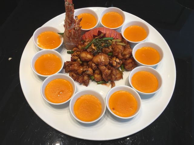 茄汁煨雪花牛肉,芥味牡丹虾球,酒香蒸富晒白鲑鱼,茶香虾,养生菌菇汤,尊味双山珍,养生炖珍菌,松茸功夫汤,港式蒸笋壳鱼,雨花石盐烤红膏蟹,精致冷盘,黑椒银杏猴菇,杏仁烧汁雪花牛肉,松茸养生功夫汤,港式蒸小笋鱼,葱烧辽参组合,鲜虾葱油饼,七味盐煎莲藕饼,点心,原味砂锅焗中黄鱼,盐焗梭子蟹,竹炭野生鸡枞菌